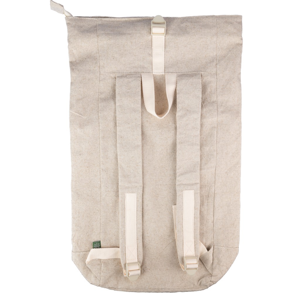 Рюкзак с раскрывающимся верхом и хлопковой подкладкой, основной карман расширяется для увеличения вместимости, украшен конопляной иконкой, изготовлен из конопли и ПЕВА.