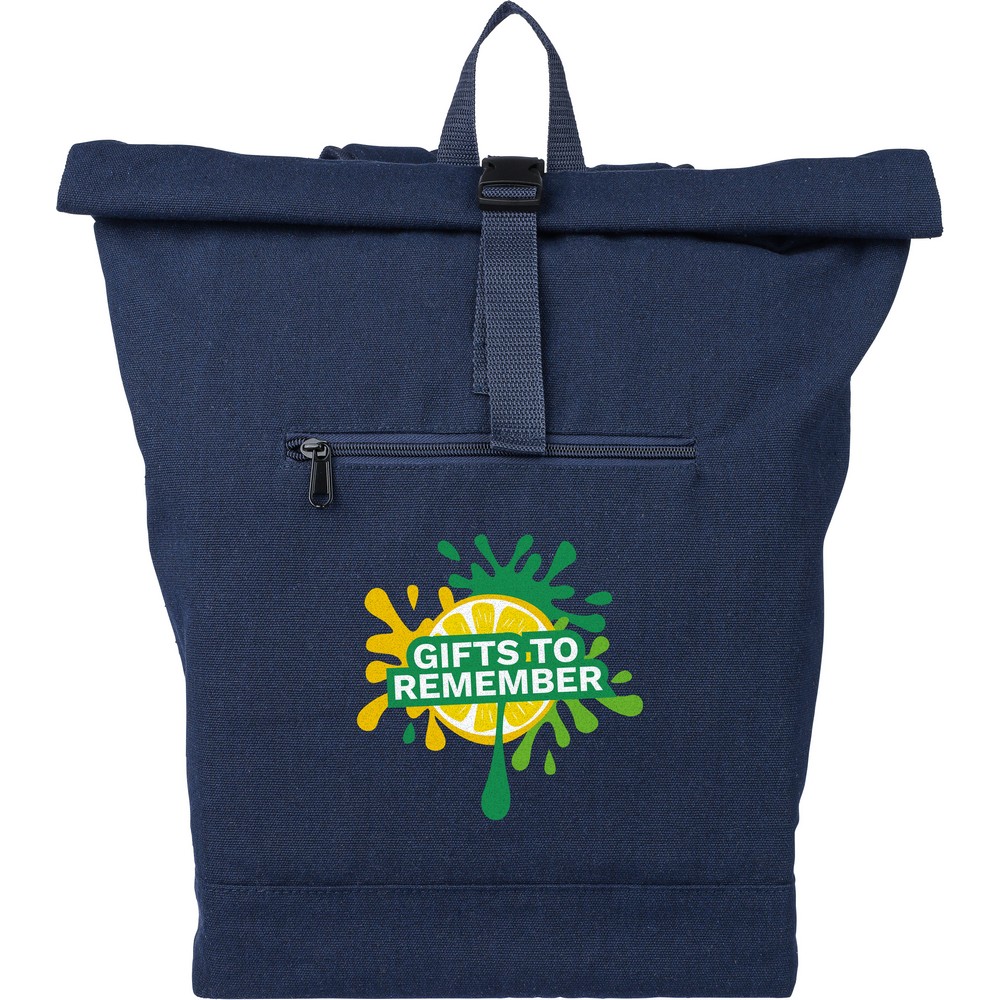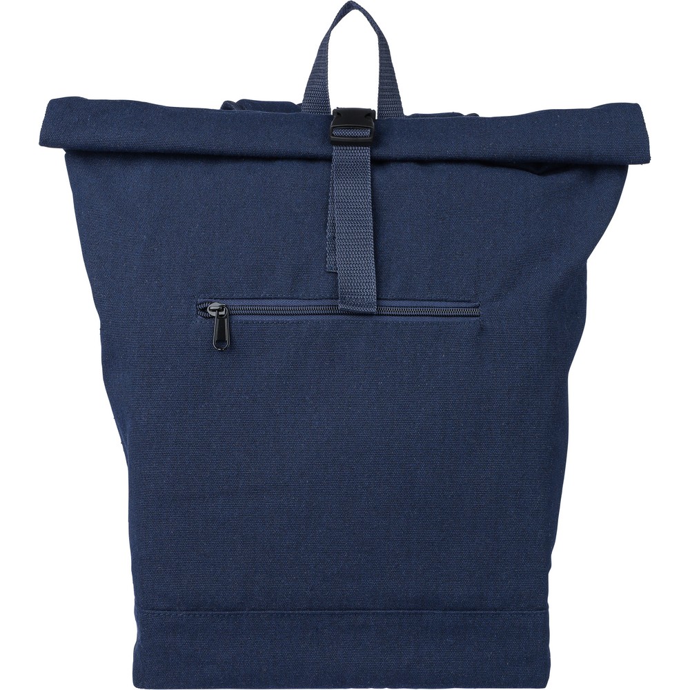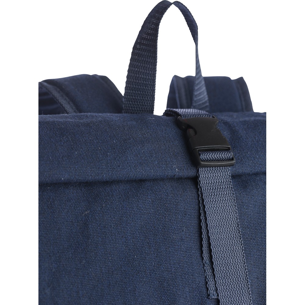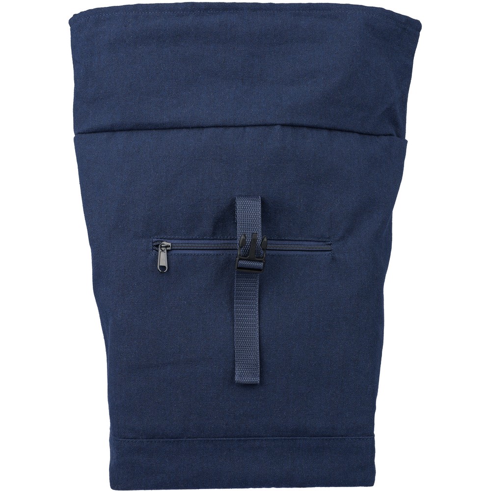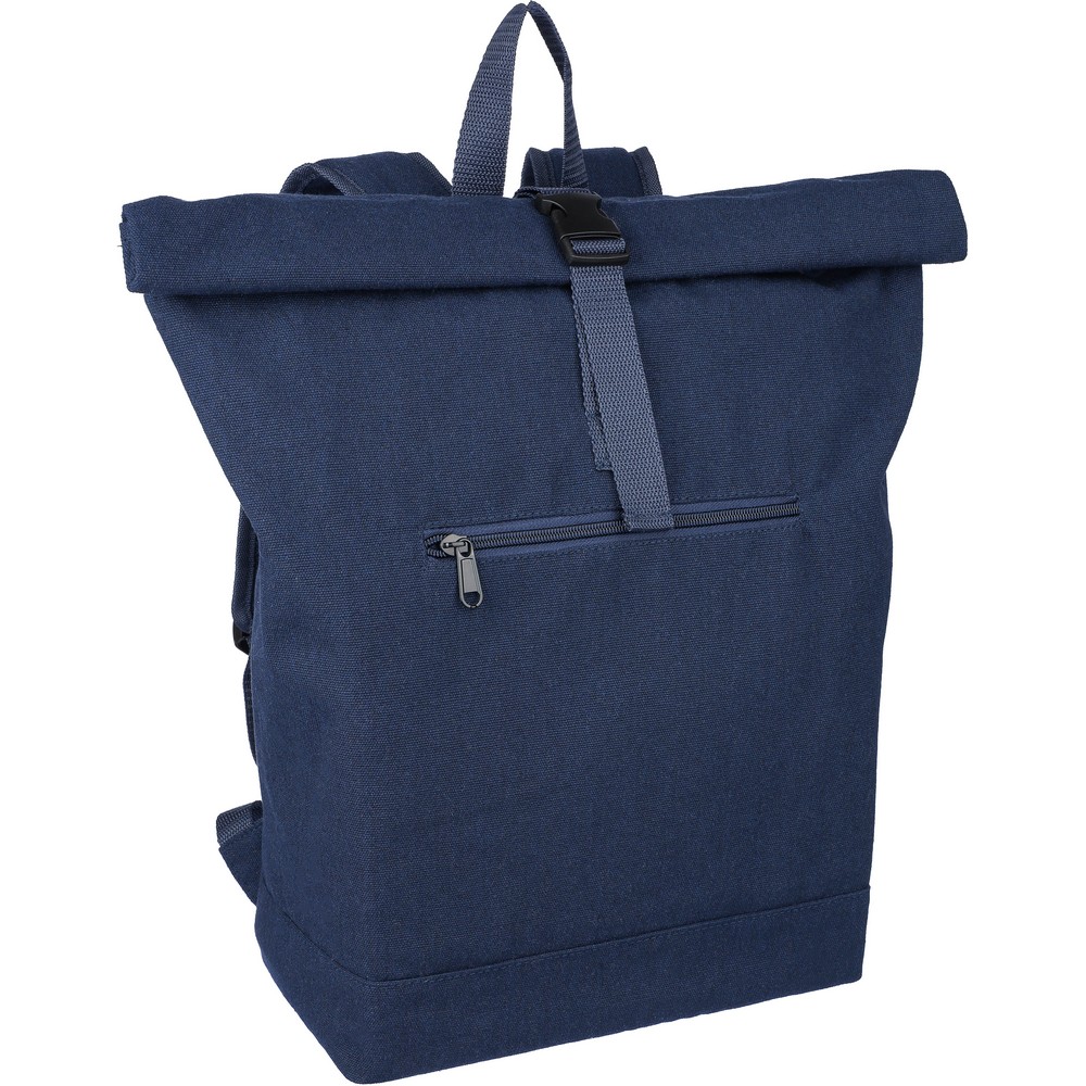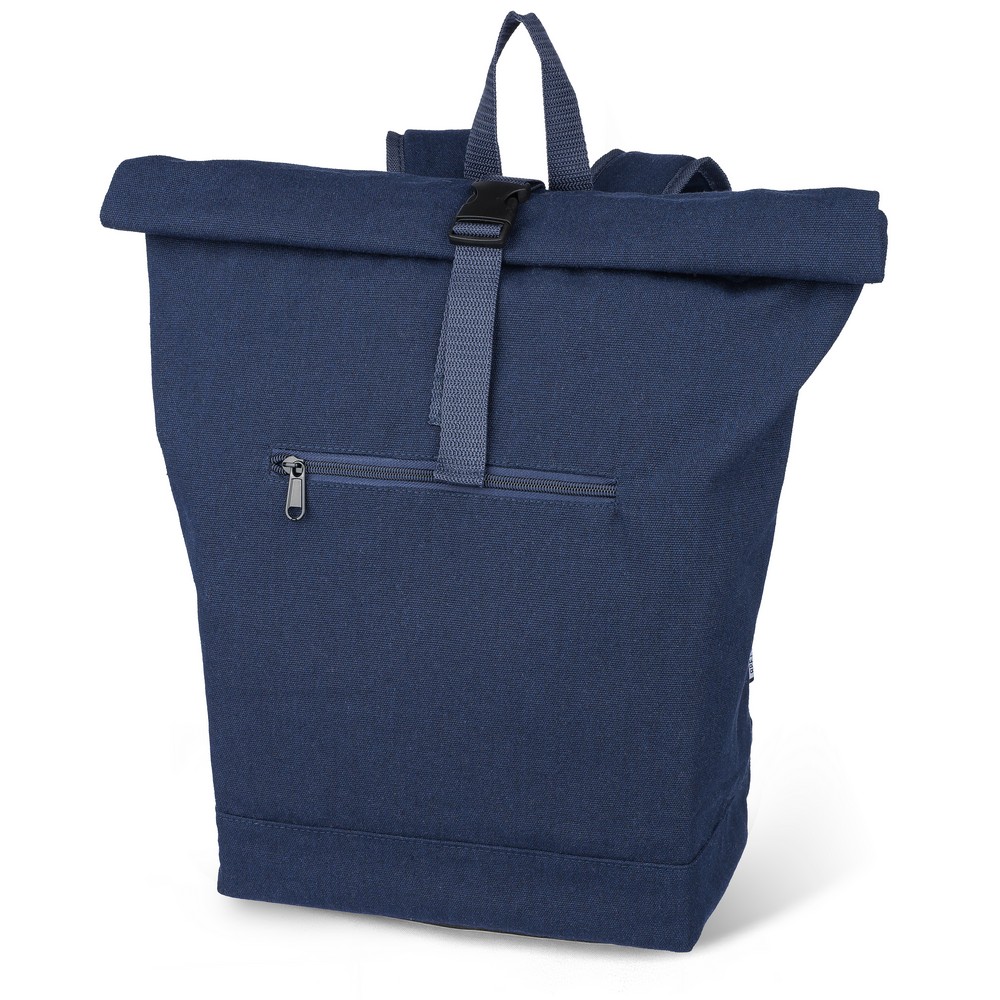 Рюкзак с роликовой застежкой, вместимостью 15 литров, большим карманом на молнии, отделением для ноутбука до 15 дюймов, двумя внутренними отделениями, одним внешним карманом, дизайн включает петлю для переноски сверху, мягкие регулируемые лямки, небольшим карманом на молнии спереди, грузоподъемность: 14 кг, изделие из переработанного поликоттона (330 г/м²), подкладка из полиэстера 210D, застежка на пластиковой пряжке.