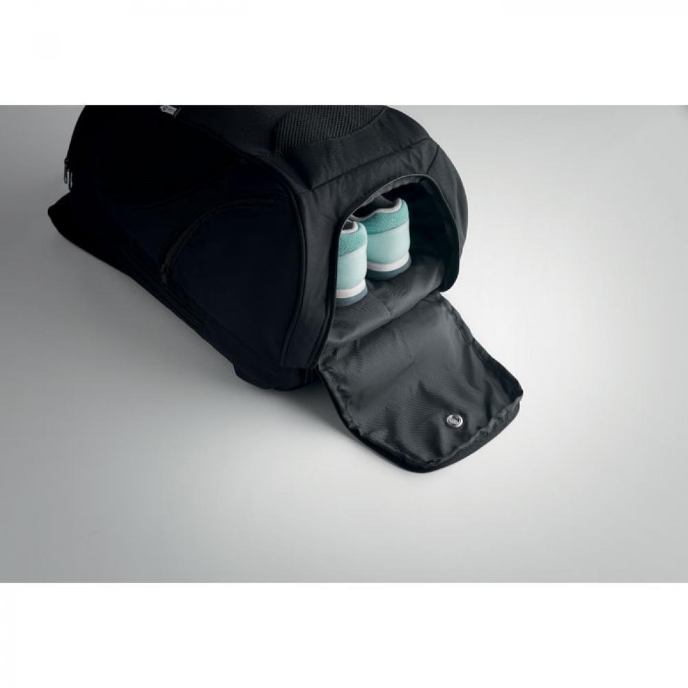 Рюкзак многофункциональный спортивный 600D из RPET с несколькими отделениями (включая мягкое отделение для ракетки). В комплекте регулируемый ремешок через плечо.
