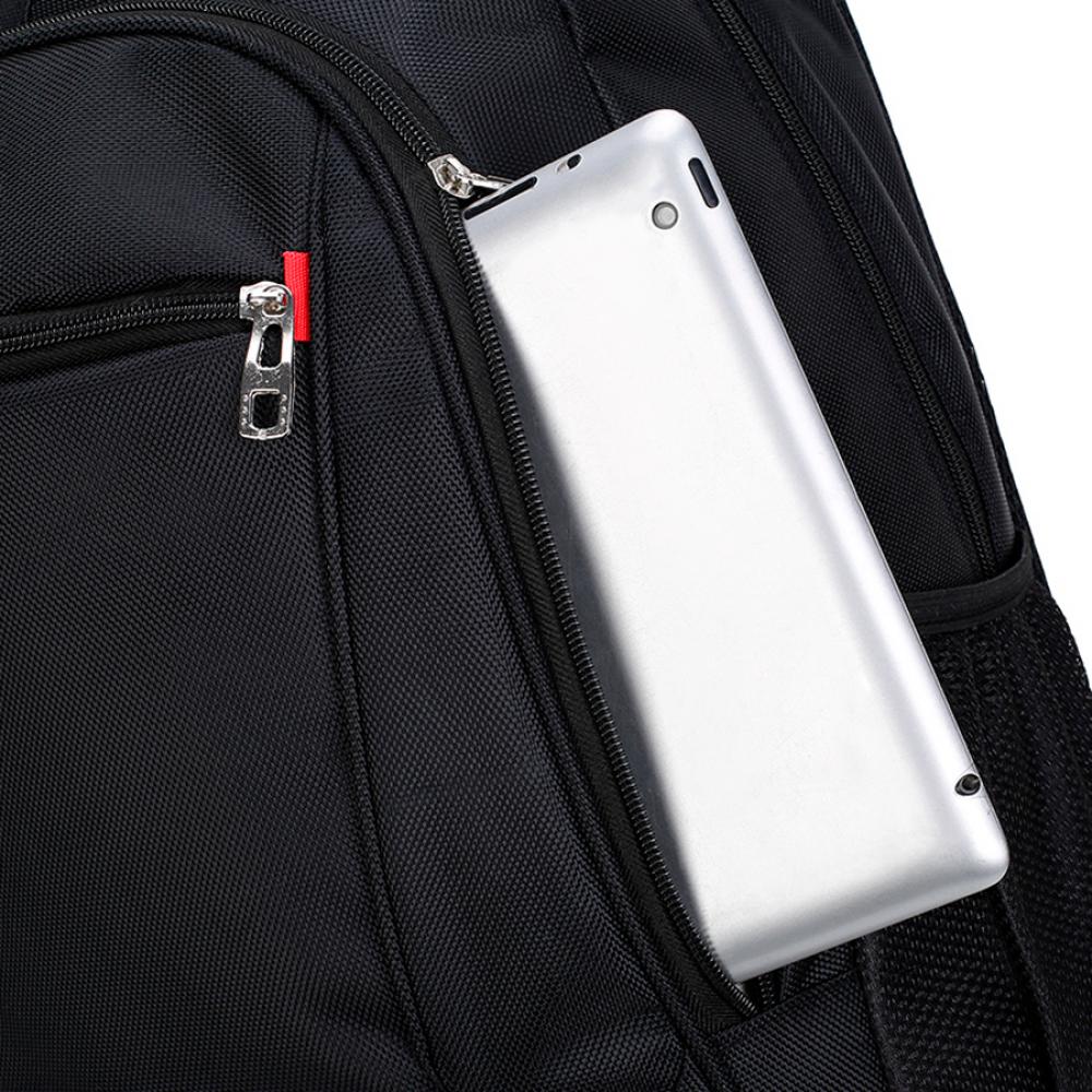 Одно большое отделение закрываетсяна молнию. Внутри большой открытый карман, где поместится ноутбук 15.6 дюймов.