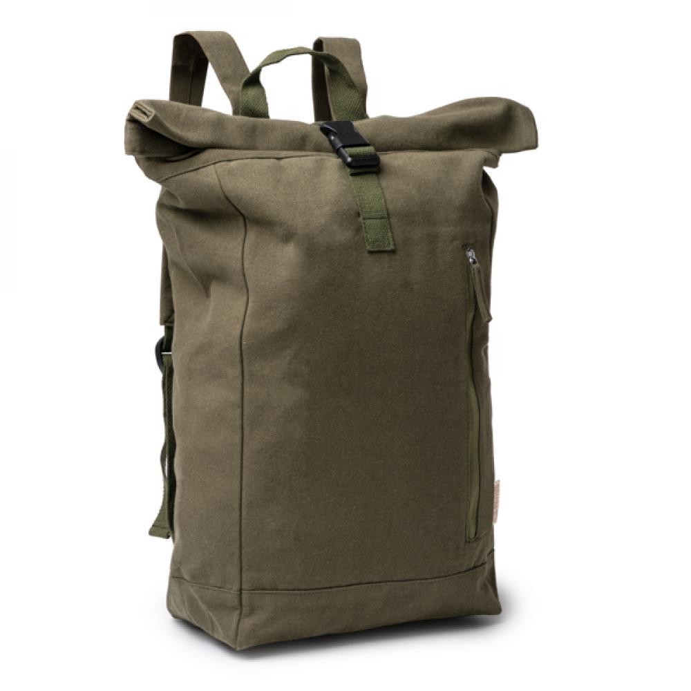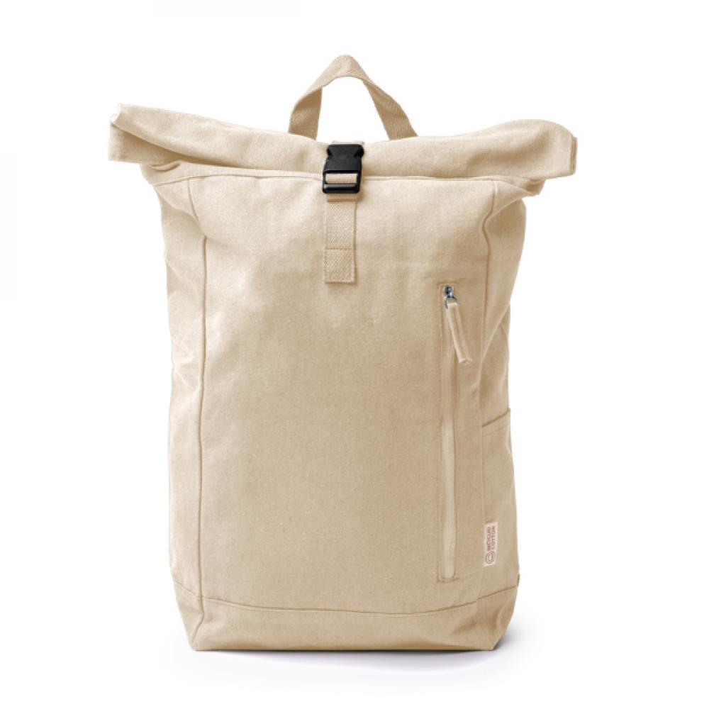 Рюкзак из переработанного хлопка плотностью 370 г/м². Большое основное отделение с расширяемым отверстием на молнии и регулируемым замком. Передний карман на молнии и боковой карман. Вместимость: 25 л.