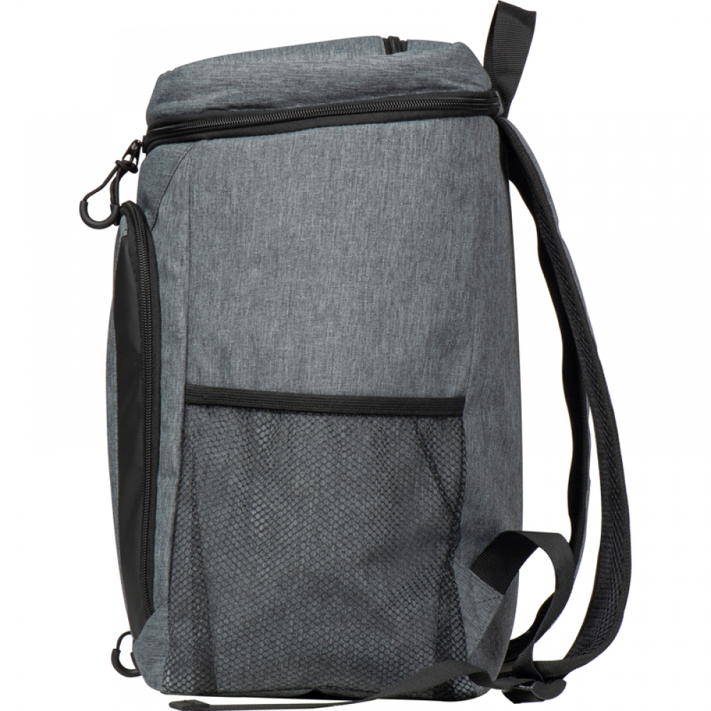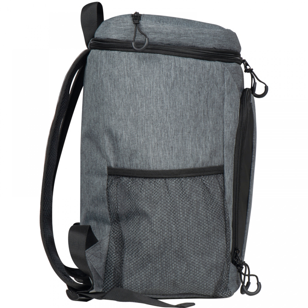 Большой рюкзак-холодильник из полиэстера 600D с объемом 25 литров, дополнительным изолированным отделением в крышке и еще одним передним отделением на молнии.