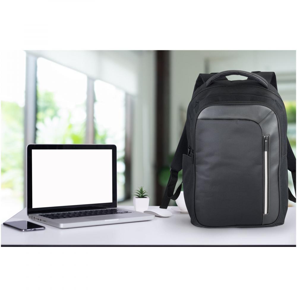 Рюкзак для ноутбука 15" с множеством карманов, мягкой спинкой и регулируемыми мягкими плечевыми ремнями. Оснащен защитой RFID и внутренней организационной панелью, включая держатель для ключей. Возможны незначительные отклонения в цвете фактического продукта из-за особенностей красителей, плетения и печати ткани.