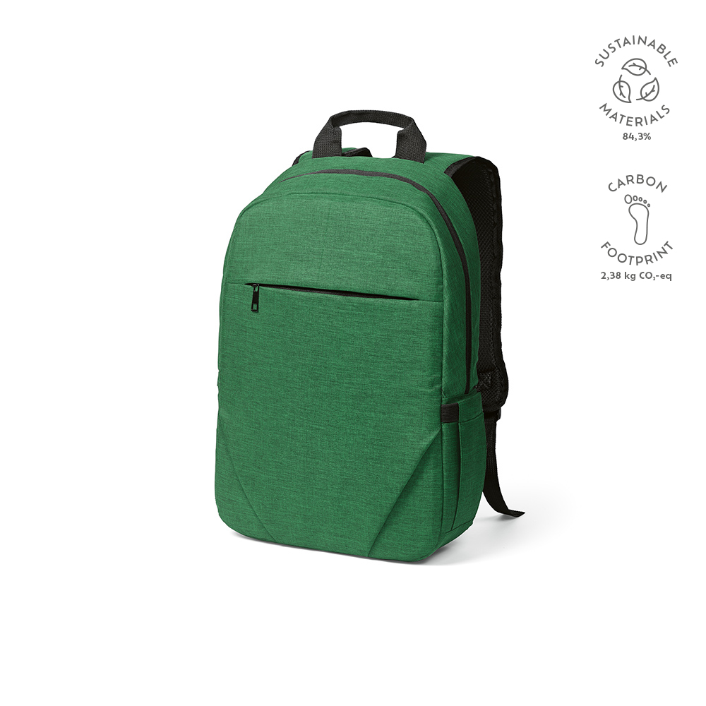 Эффективность сочетается с устойчивостью в нашем рюкзаке из 300 D rPET объемом 18 литров. Боковой карман и переднее отделение на молнии увеличивают его функциональность. Благодаря усиленной верхней ручке, он разработан для удобства передвижения в городских условиях, сохраняя при этом свою прочность.
