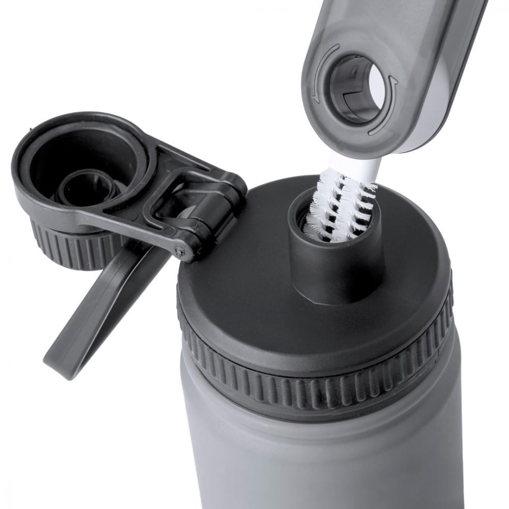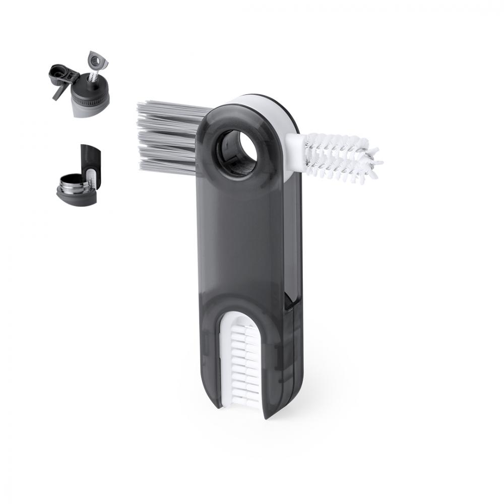 Практичная универсальная щетка для уборки, специально разработана для бутылок, термосов, чашек, стаканов и аналогичных предметов. Включает 3 щетки с разными типами щетинок, идеально подходит для правильной уборки труднодоступных мест контейнеров. Изготовлена из прочного материала ABS, с плоским брендированием. Представлена в индивидуальной коробке из крафт-картона. 3 функции