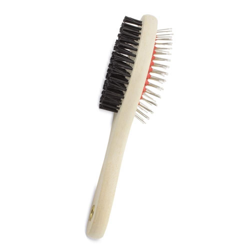 Щетка DUO TOBY - это двухфункциональная щетка для домашних животных, разработанная для обеспечения наилучшего ухода за шерстью вашего питомца. Сторона с мягкими синтетическими волокнами используется для разглаживания и придания блеска верхнему слою шерсти, удаляя следы пыли и поверхностной грязи. Другая сторона оснащена металлическими шипами с закругленными концами, которые защищают кожу, проникая вглубь шерсти, помогая распутывать и структурировать волосы. Подходит для животных с длинной, кудрявой и лохматой шерстью с густым подшерстком. Подходит для регулярного использования. Конструкция выполнена из дерева и имеет отверстие с шипами для подвешивания.