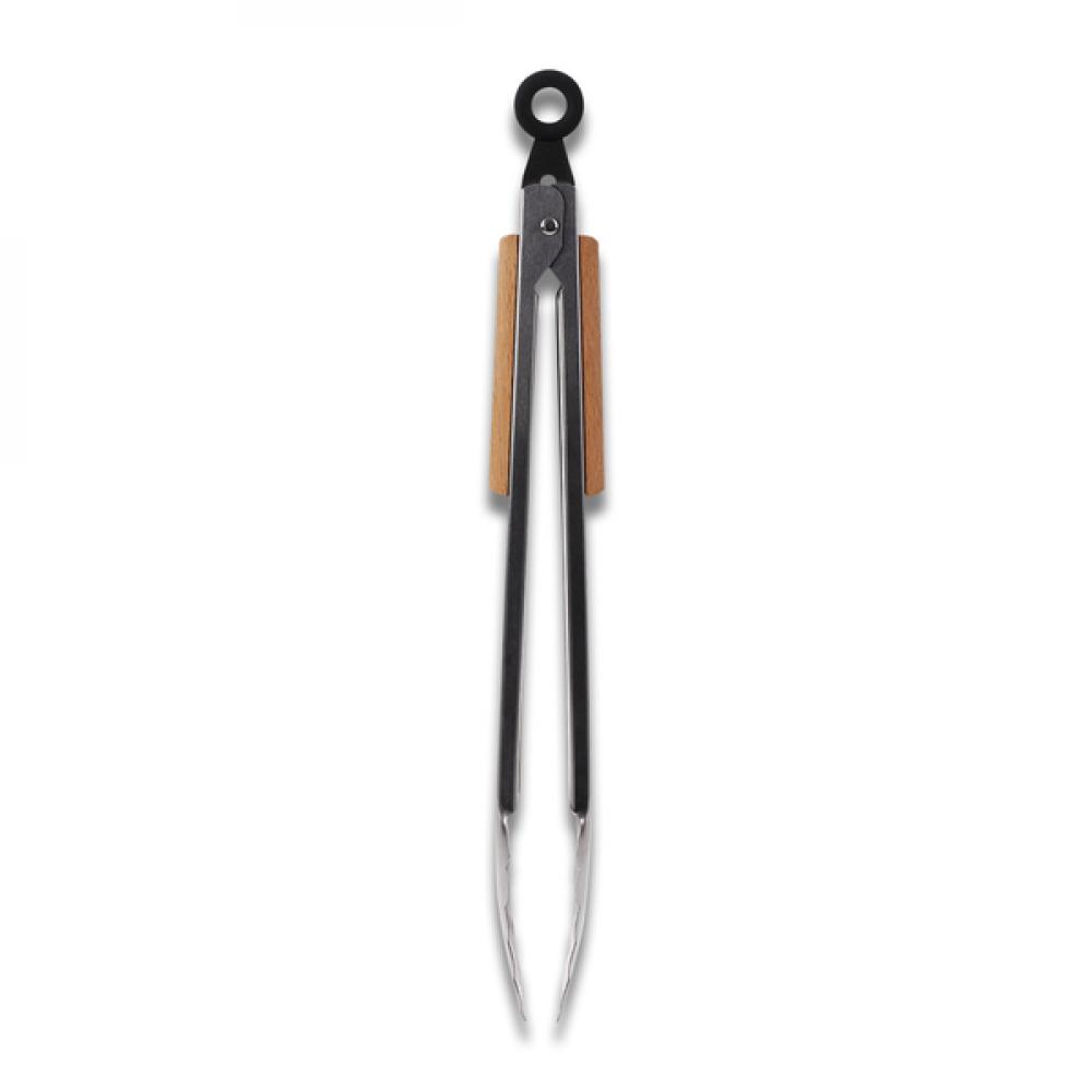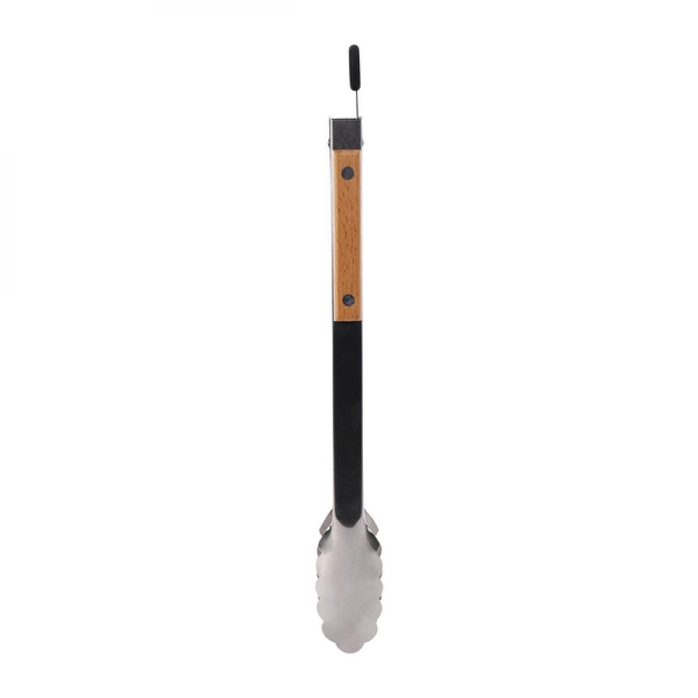 Гриль-щипцы из нержавеющей стали с отделкой деревянной ручкой и механизмом блокировки.