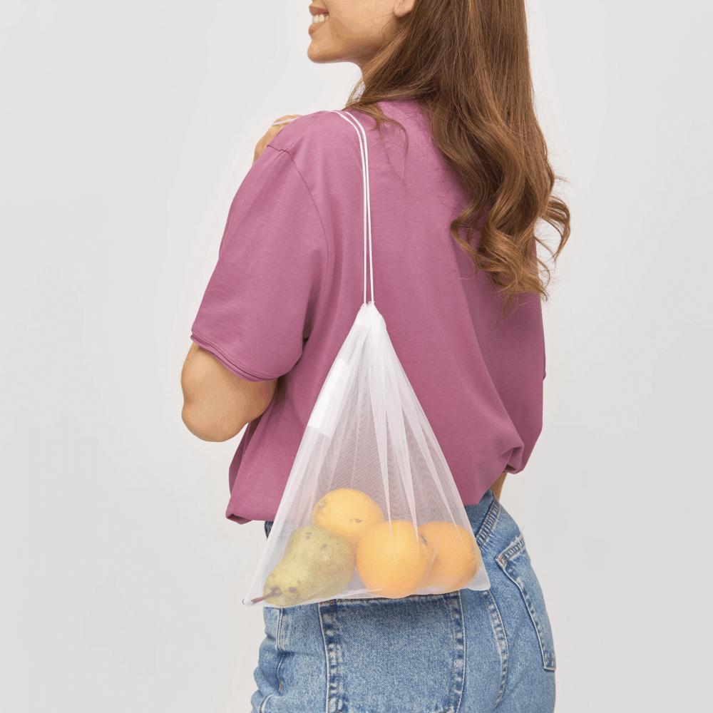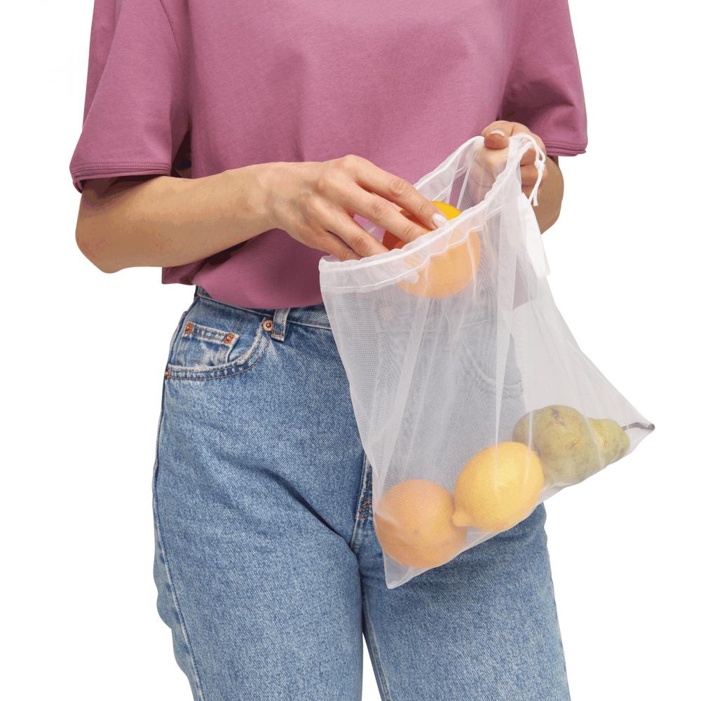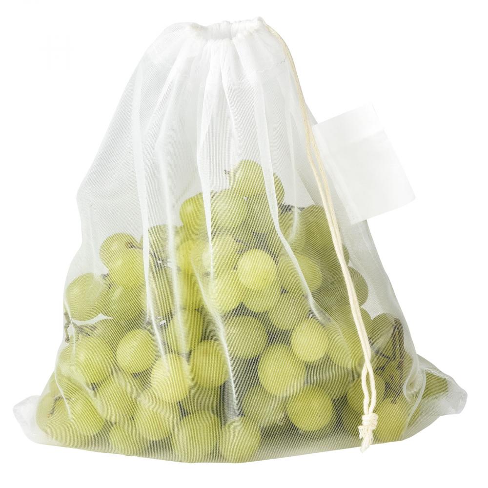 Сетчатый мешок для фруктов и овощей BLUE PLANET: изготовлен из переработанных материалов, закрывается шнурком, можно стирать, многоразовый, с этикеткой для печати