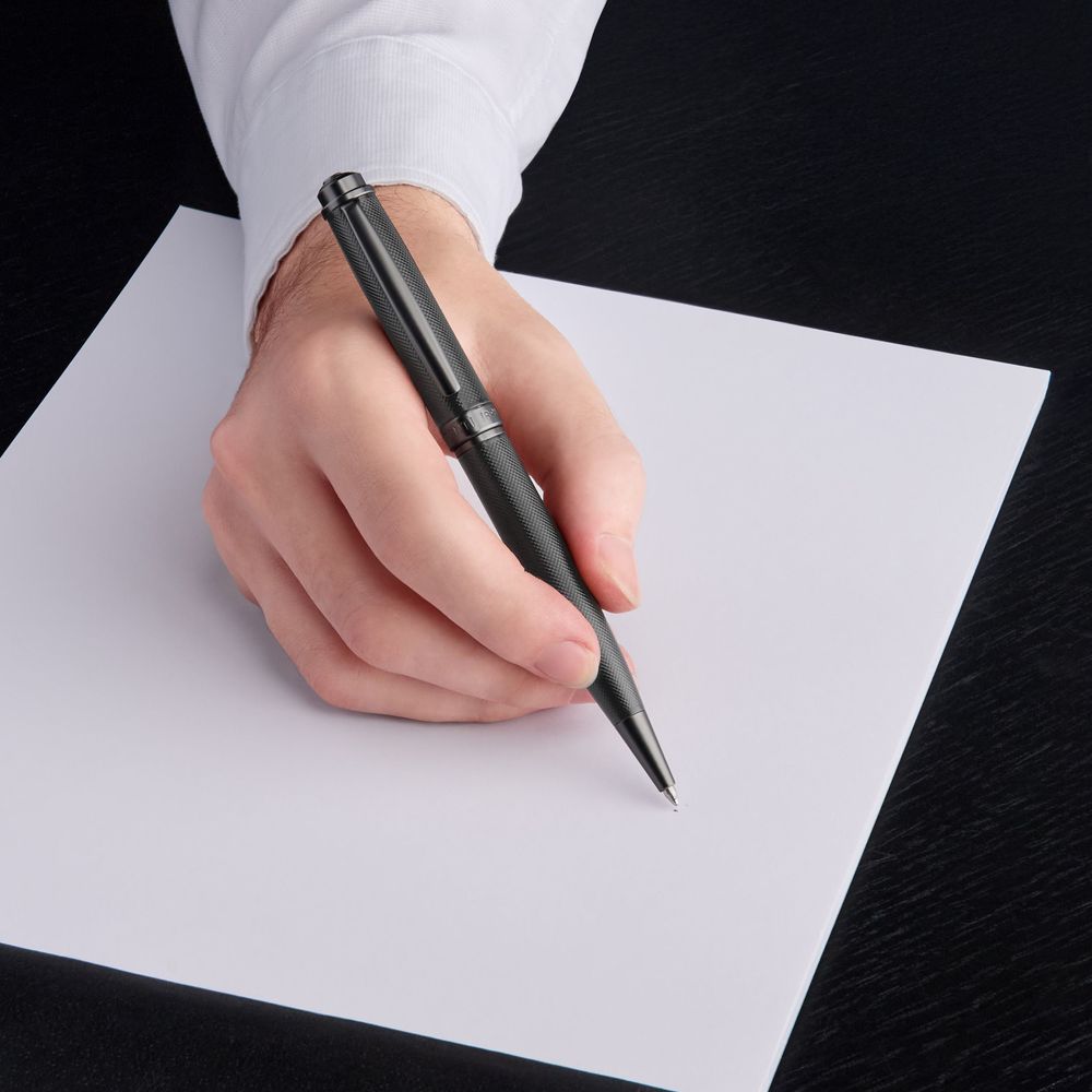 Шариковая ручка Belgravia от Cerruti 1881 является воплощением истинной роскоши. Ее корпус с матовым черным покрытием украшен изысканной гравировкой. Современные матовые элементы цвета "оружейный металл" дополняют дизайн, а культовый логотип CRR в потрясающем 3D-исполнении венчает верхушку. Эта ручка, сочетающая в себе роскошную сдержанность и вечную современность, является утонченным инструментом для повседневной элегантности.