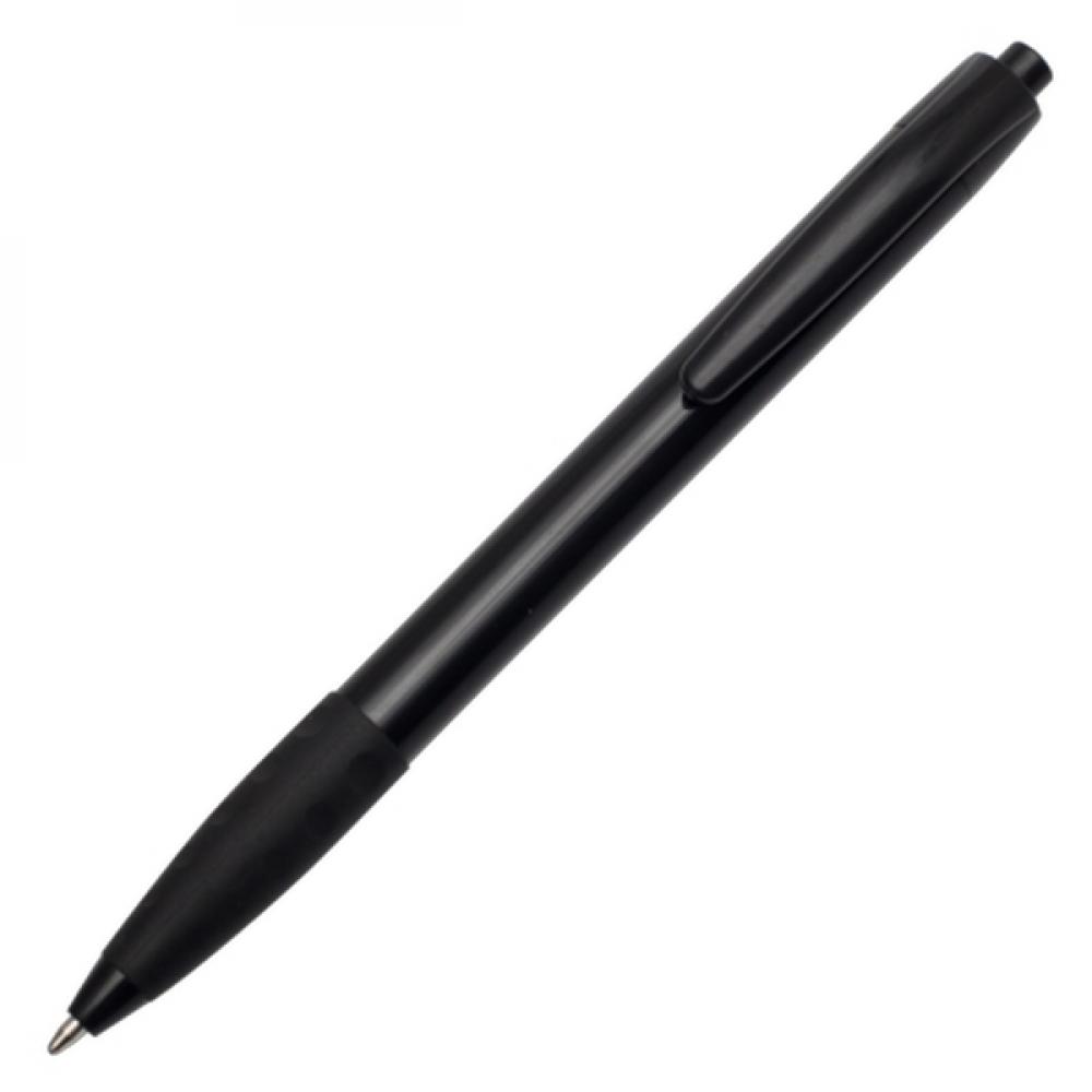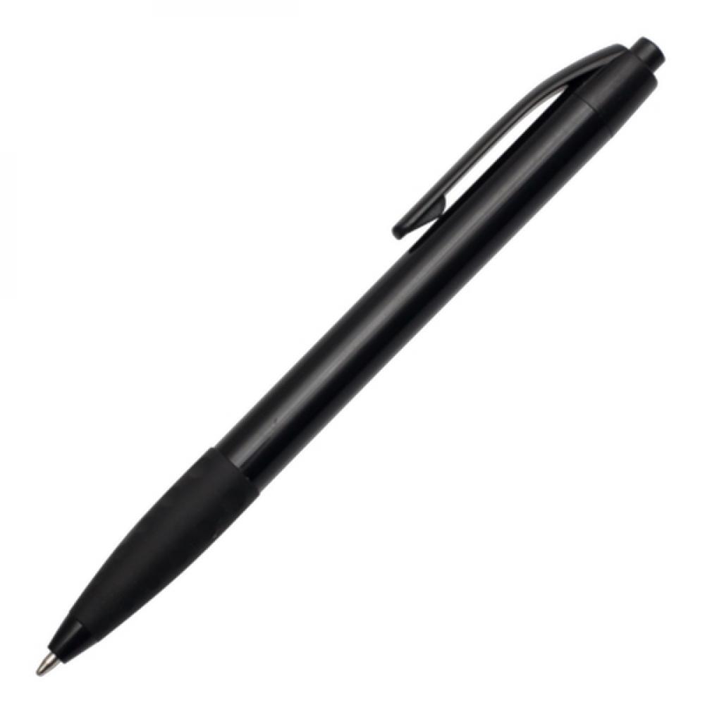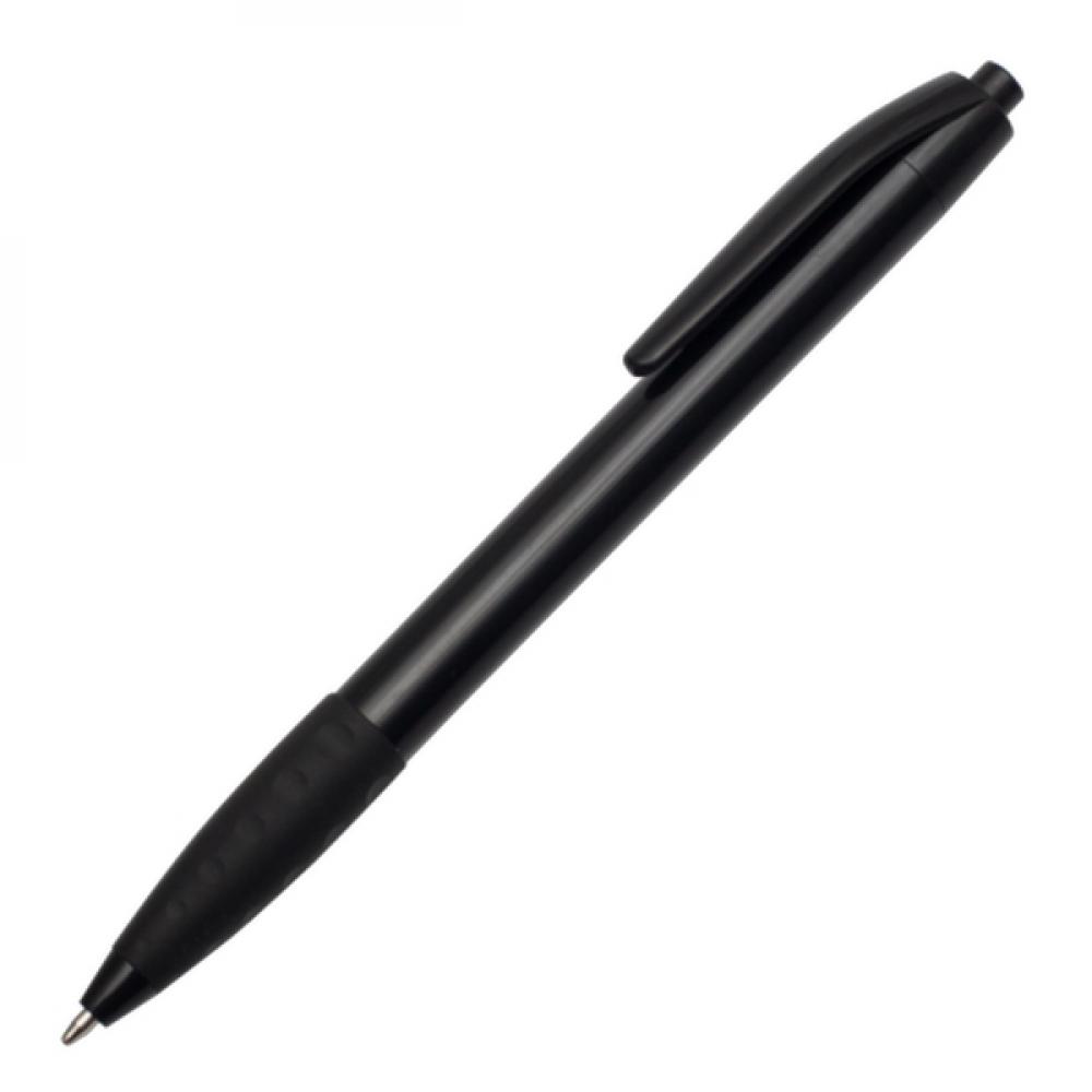 Пластиковая промо-шариковая ручка с резиновым держателем. Заправка синего цвета. Возможна полноцветная печать (УФ).