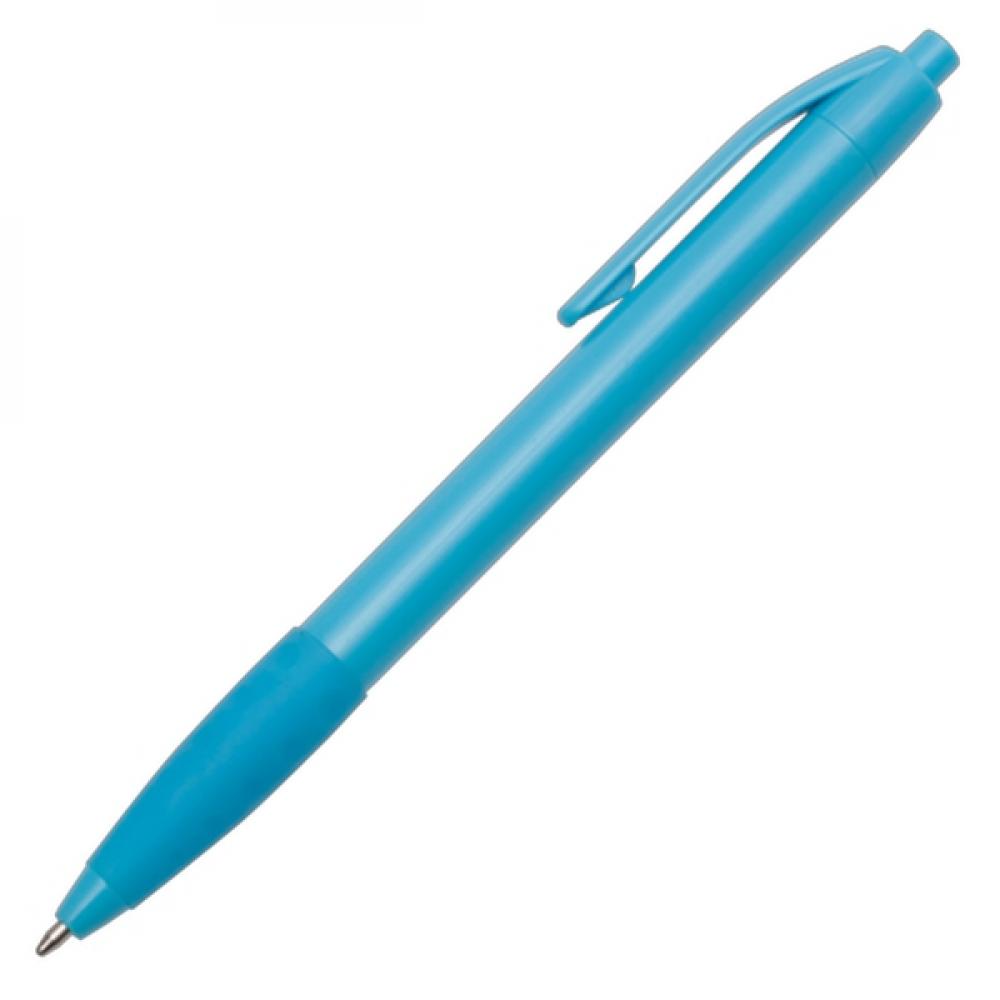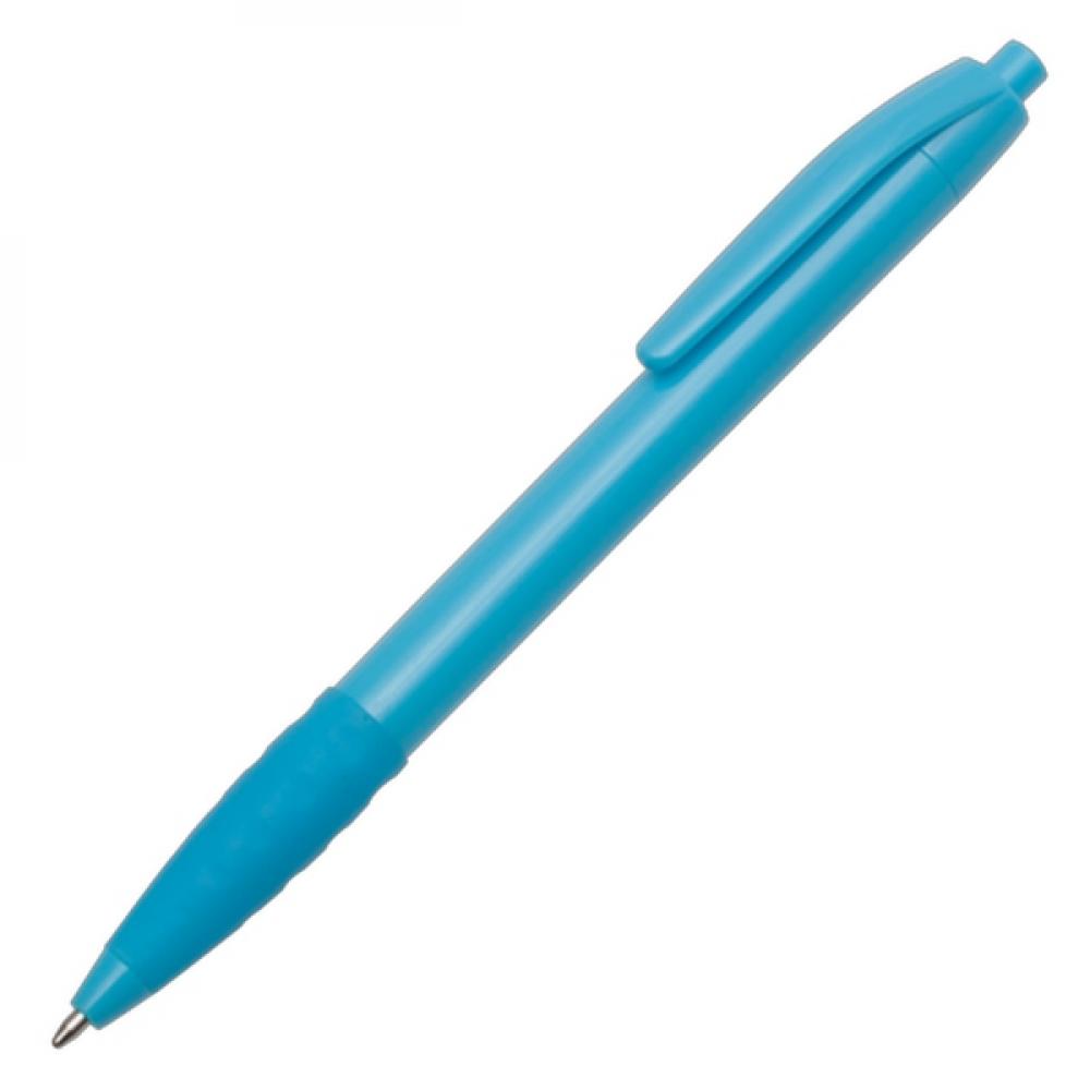 Пластиковая промо-шариковая ручка с резиновым держателем. Заправка синего цвета. Возможна полноцветная печать (УФ).