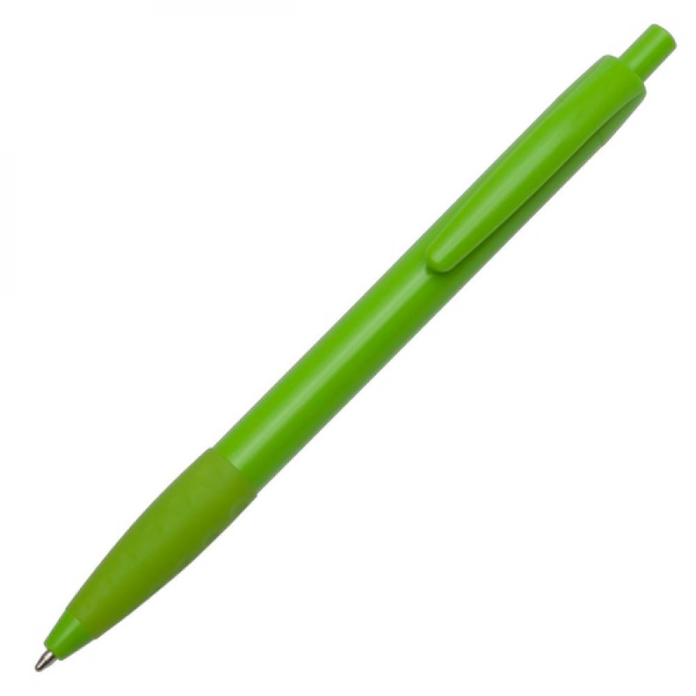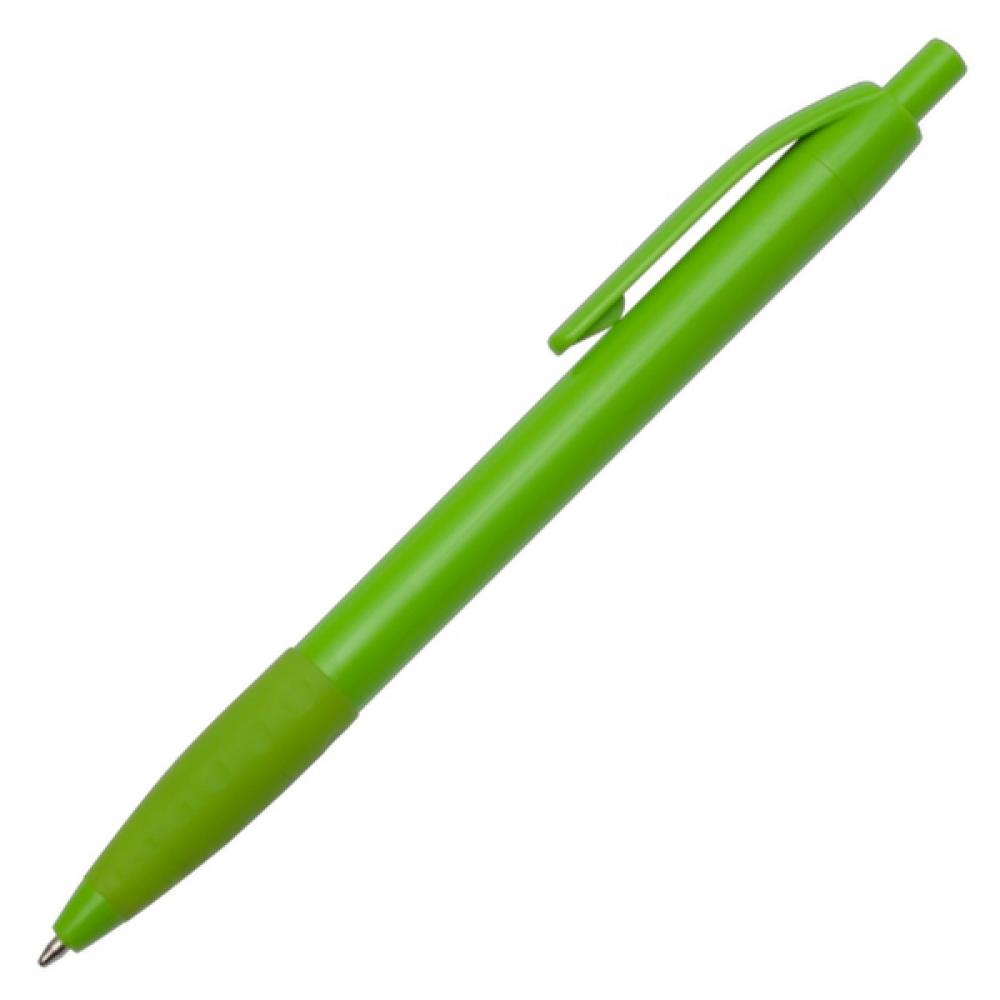 Пластиковая промо-шариковая ручка с резиновым держателем. Заправка синего цвета. Возможна полноцветная печать (УФ).