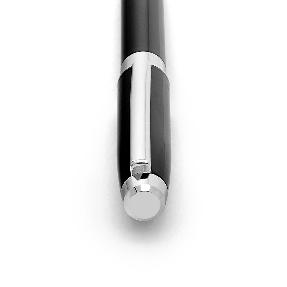 Вечная линия Coimbra включает в себя блестящую черную лакированную шариковую ручку с хромированными акцентами и изысканно выполненную папку с мягкой текстурой матового черного цвета.