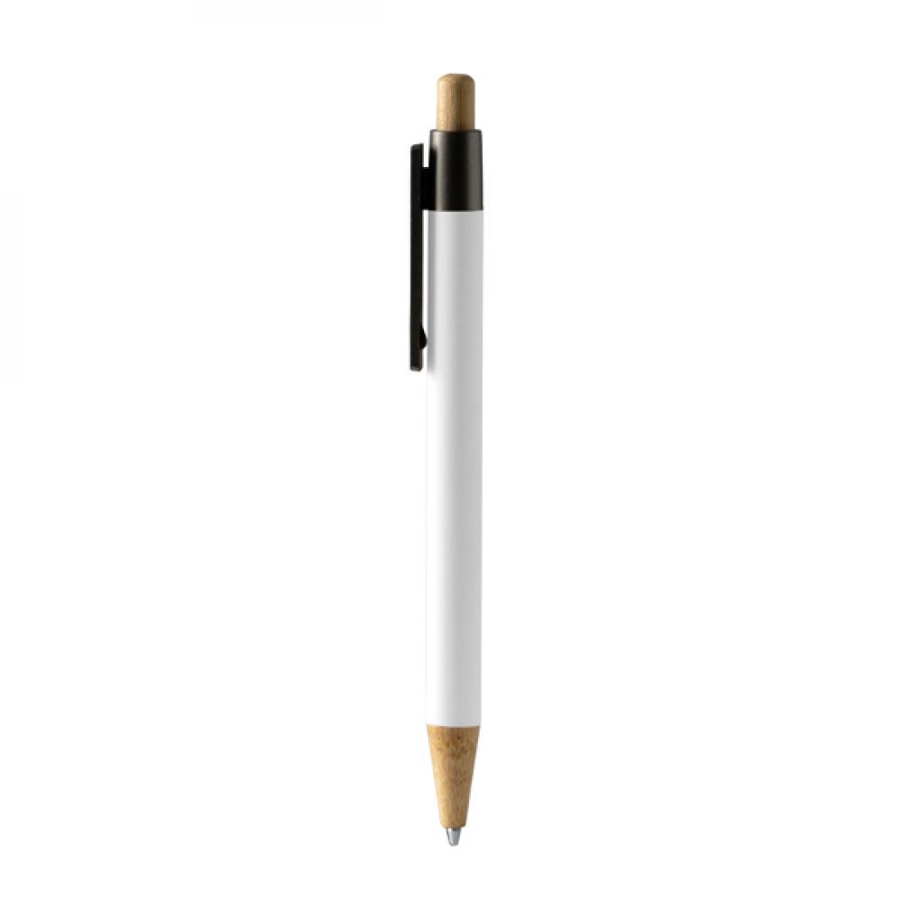 Металлическая ручка с резиновым покрытием, с бамбуковой кнопкой и широким зажимом из бамбука, идеально подходит для выделения. Синий стержень.