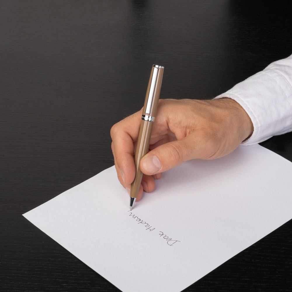 Наш культовый силуэт Gear возвращается с вечной изюминкой, с упрощённым логотипом в виде кольца и глянцевым лаком. Эта новая версия Gear уже ощущается как икона и, вероятно, является нашим самым коммерчески успешным изделием. Она отличается роскошным глянцевым лаком на фирменной оправе. Это изысканный взгляд на минималистичный дизайн, который мгновенно становится классическим письменным инструментом. Доступен в различных цветах, как в нейтральных, например, в этом верблюжьем оттенке, так и в ярких цветовых блоках.