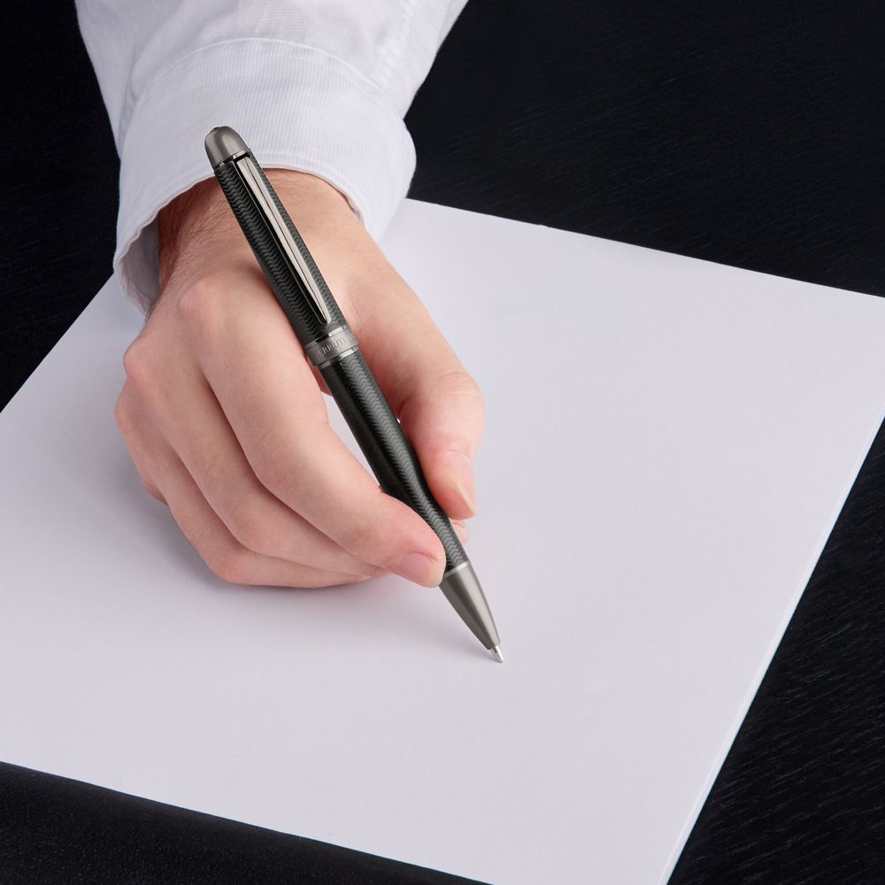 Классическая форма, украшенная гравировкой в виде шеврона, напоминающей текстильный принт одноименной линии сумок, делает эту ручку воплощением вечной элегантности. Отделка и среднее кольцо цвета "пистолетный металл" создают игру матовых и глянцевых контрастов, добавляя изысканности этому высококачественному и доступному аксессуару.