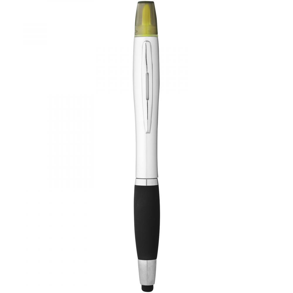 Шариковая ручка с поворотным механизмом, стилусом, маркером и мягкой прорезиненной ручкой.