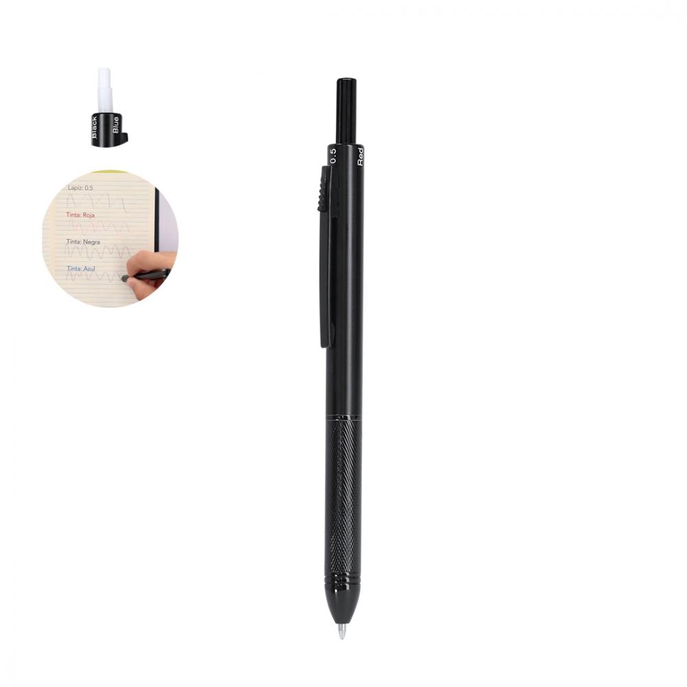 Шариковая ручка и механический карандаш 4-в-1 из прочного алюминия с умным механизмом, позволяющим выбирать цвет чернил или карандаша.