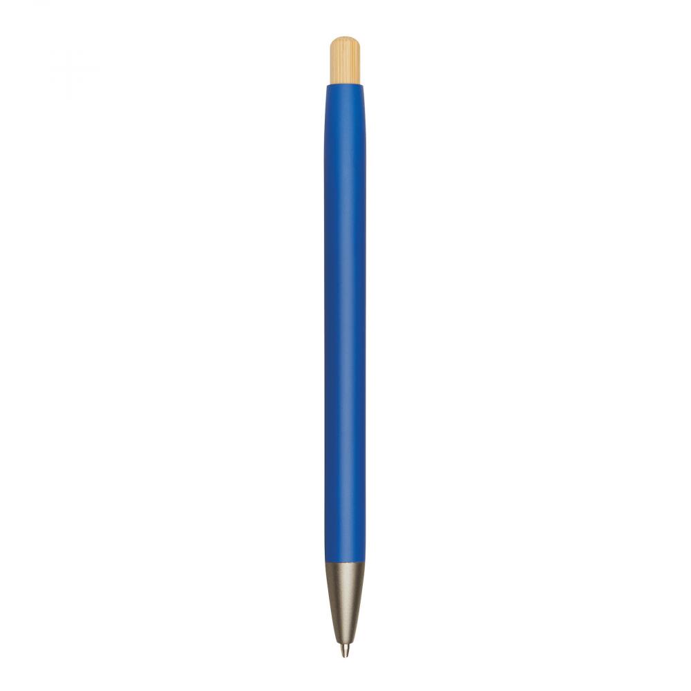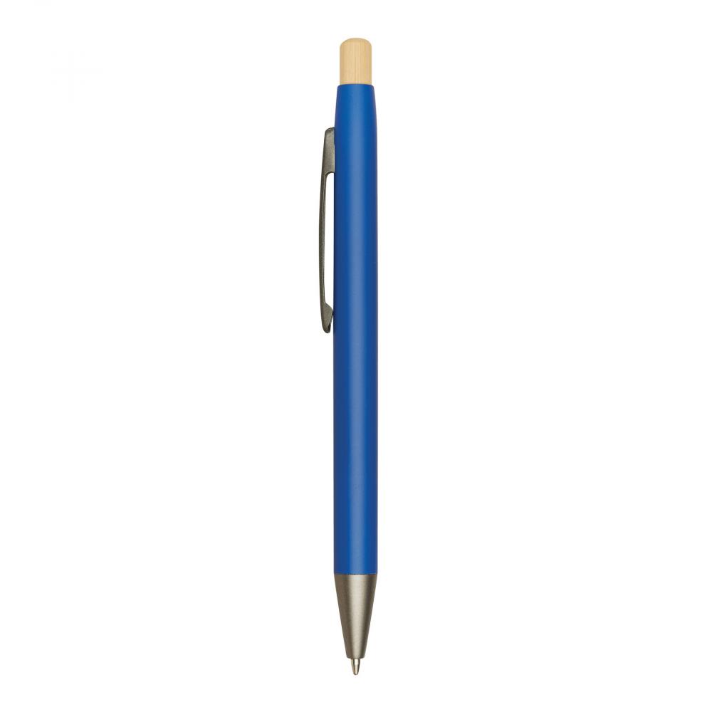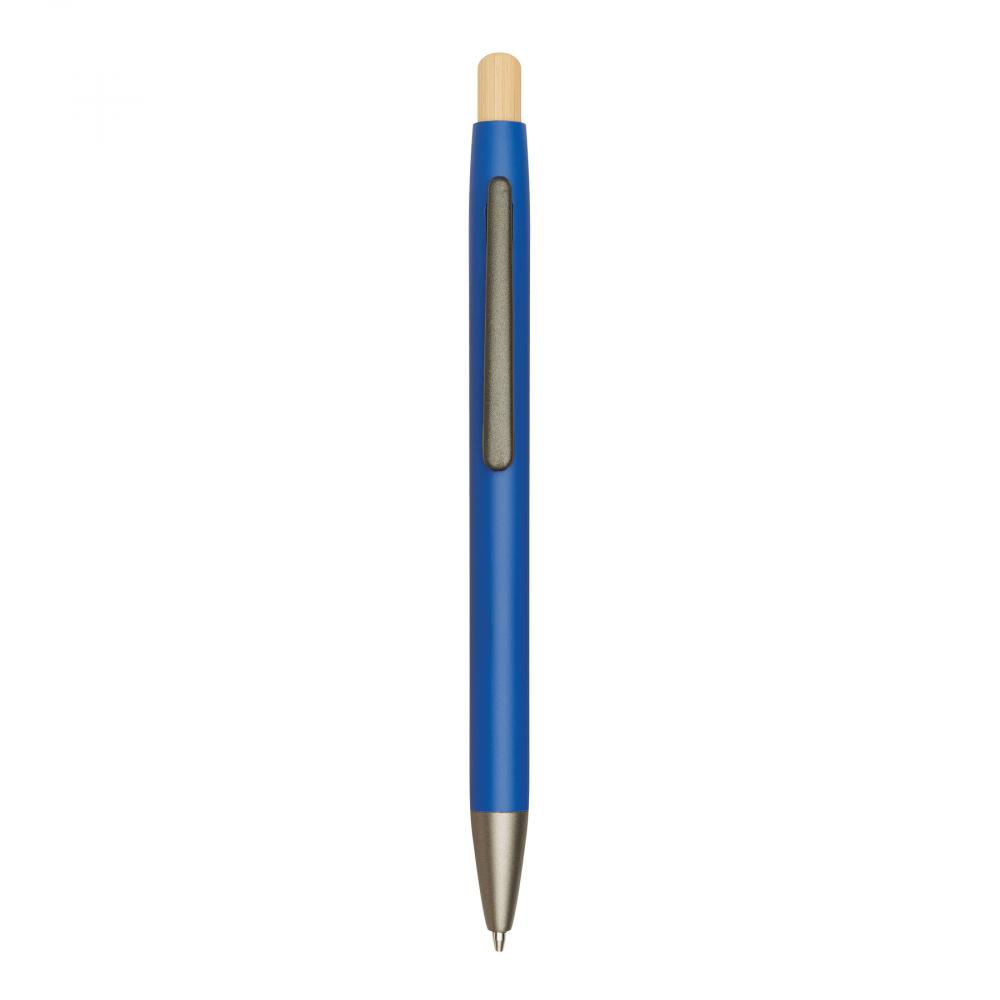 Шариковая ручка из алюминия BAMBOO PUSHER: матовый металлический корпус из переработанного алюминия, механизм нажима, кнопка из бамбука, синяя паста