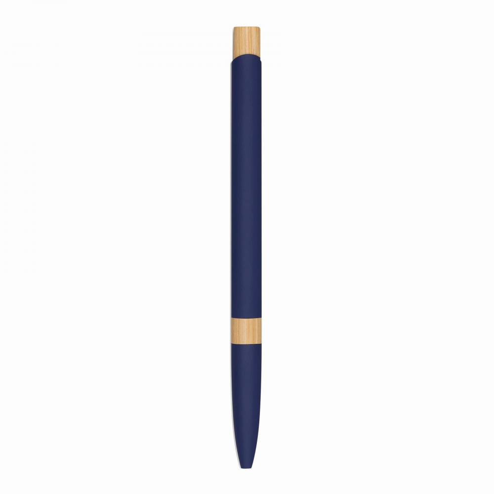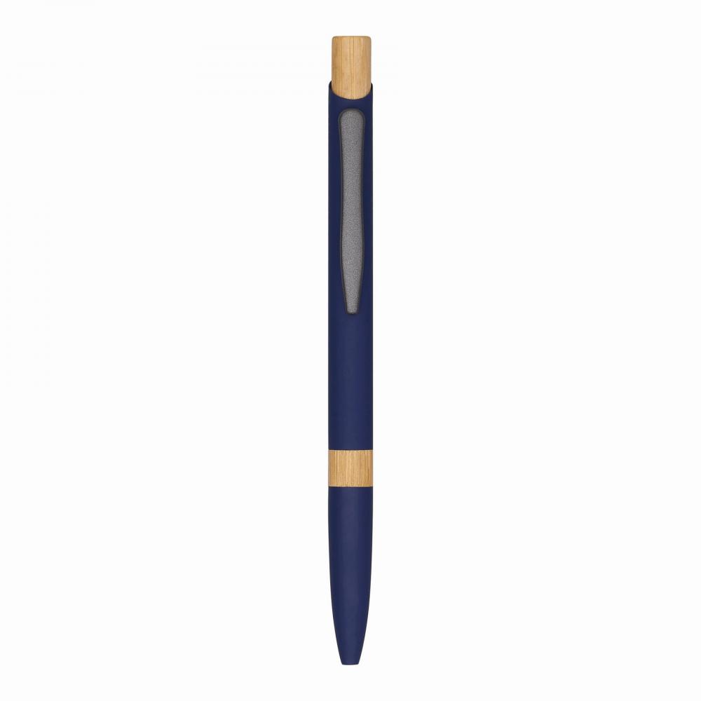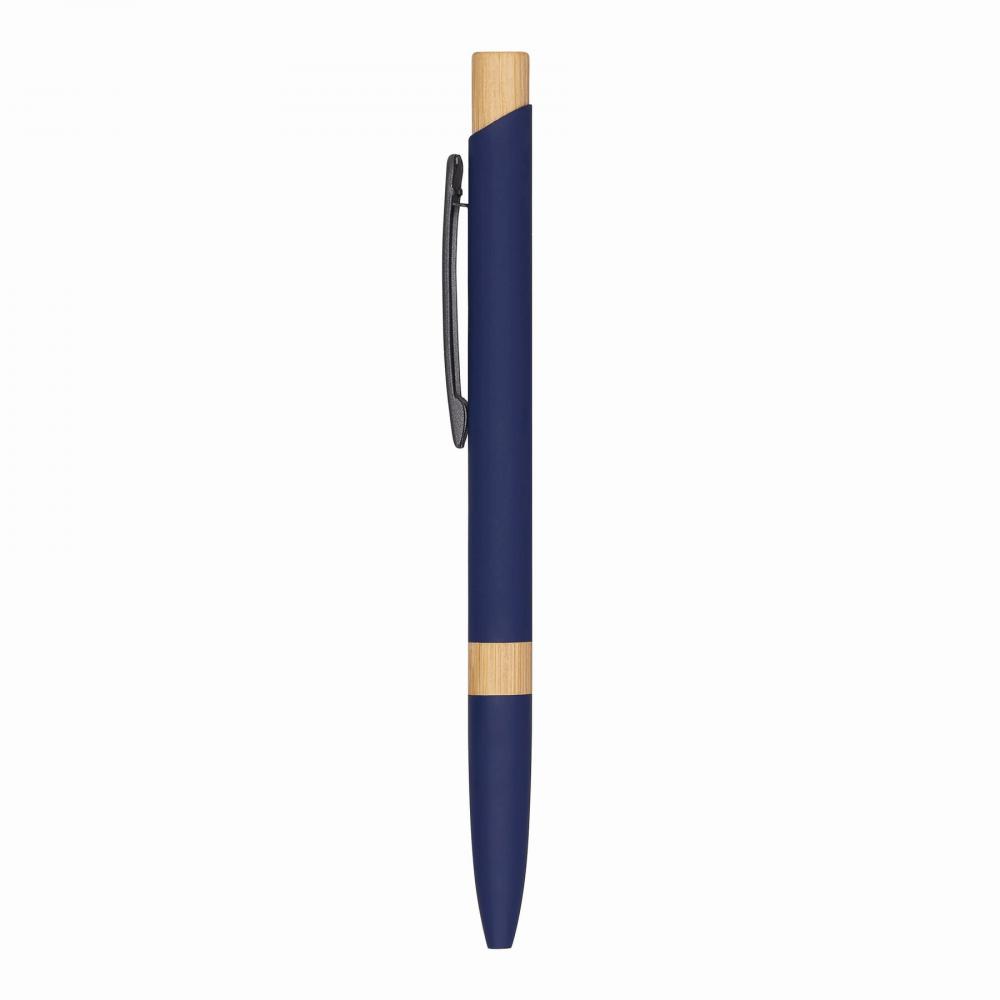 Шариковая ручка из алюминия BAMBOO SYMPHONY: матовый металлический корпус, изготовленный из переработанного алюминия, бамбуковое кольцо в области захвата и бамбуковая кнопка, нажимной механизм, большой стержень с синей пастой
