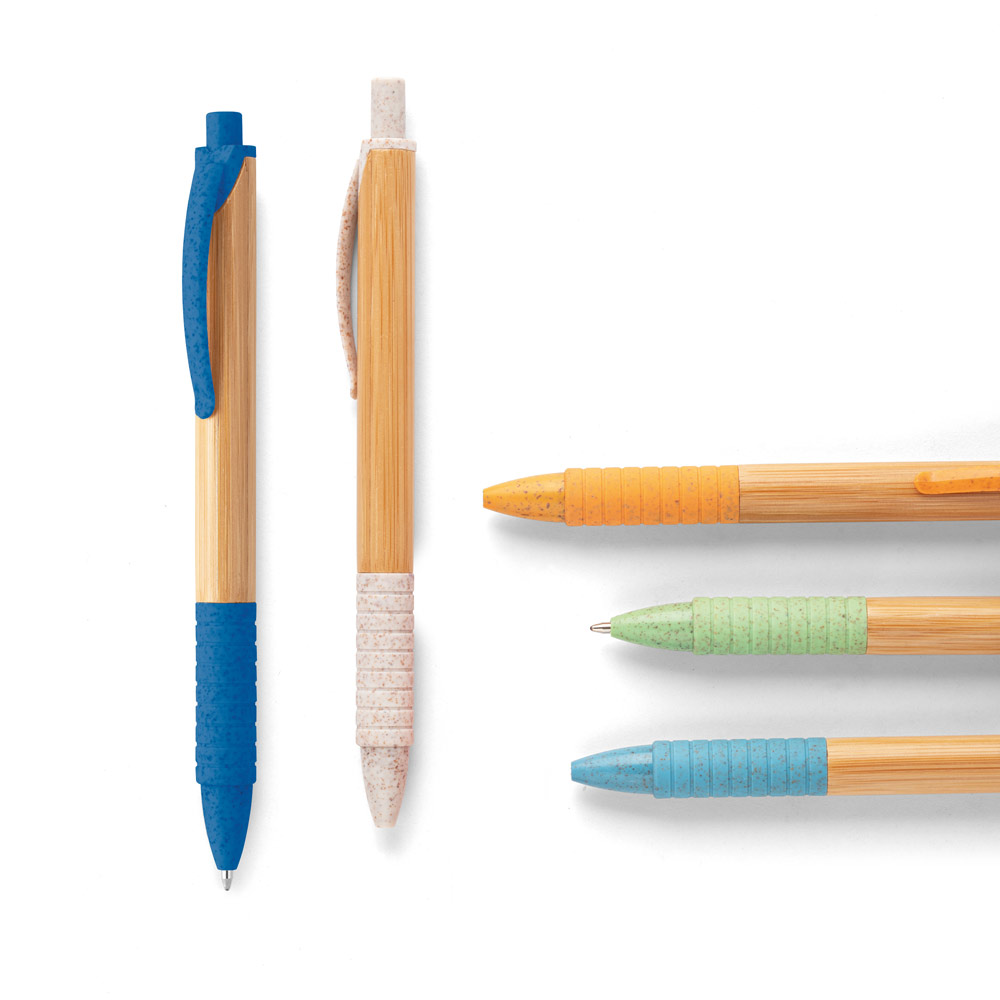 Бамбуковая шариковая ручка с зажимом, резиновым грипом и цветными элементами из пшеничного волокна и ABS. ø11 x 142 мм