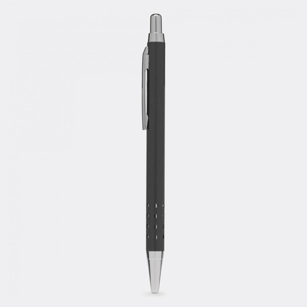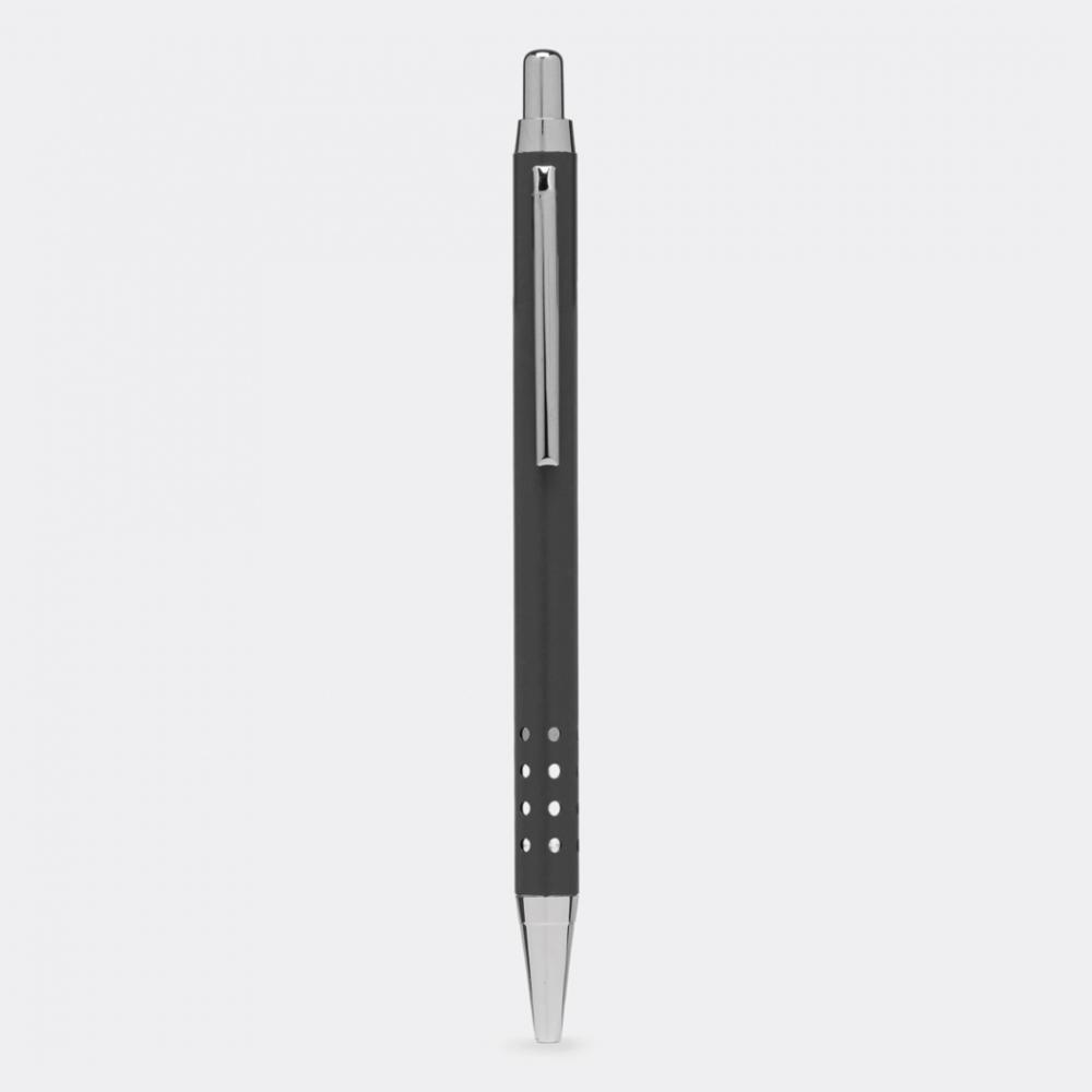 Шариковая ручка из латуни BUDAPEST: корпус с отверстием, механизм с нажимом, большой стержень, синяя чернила.