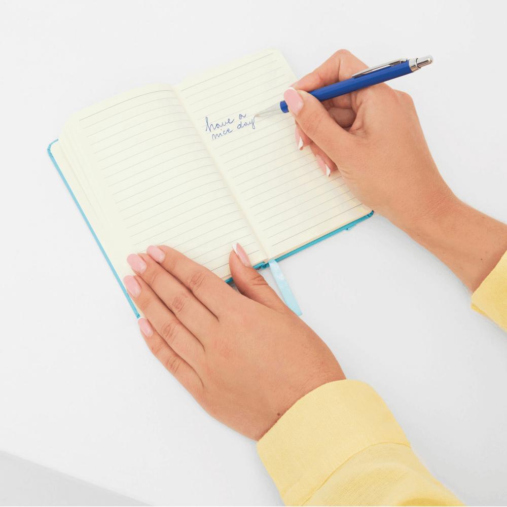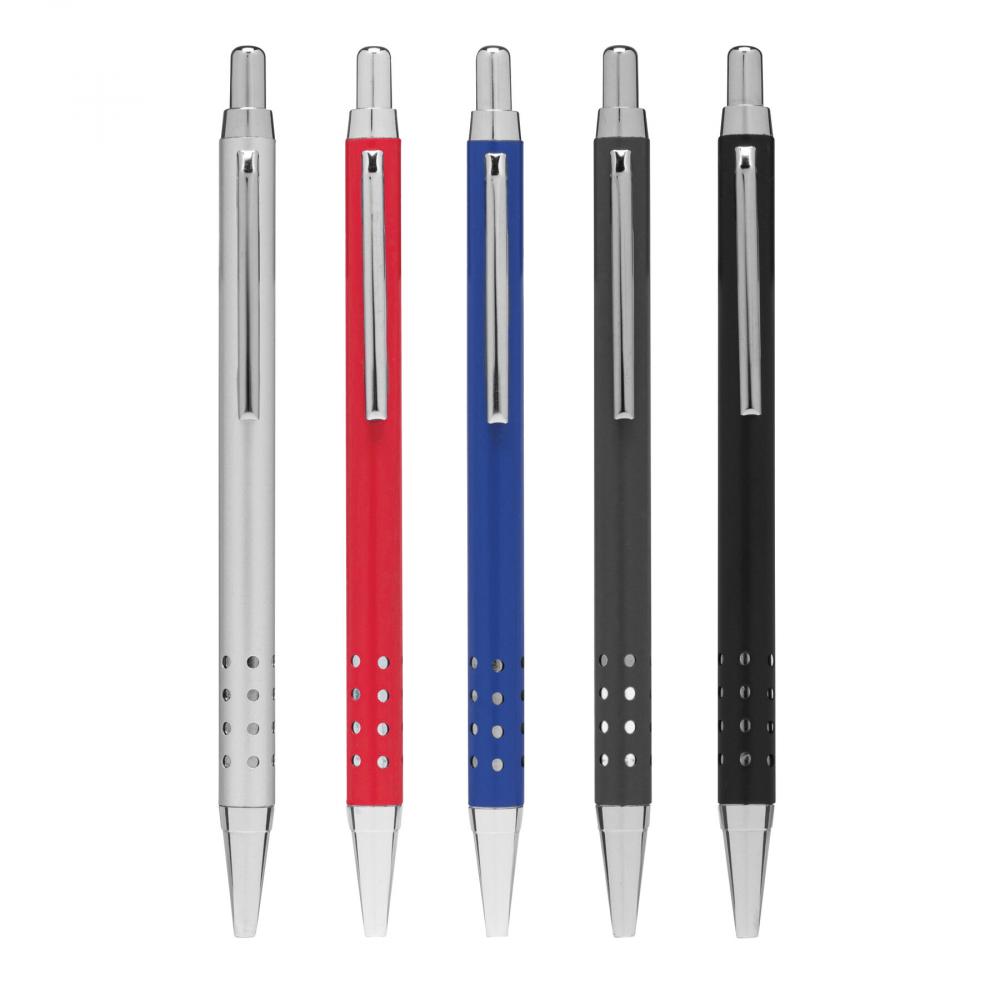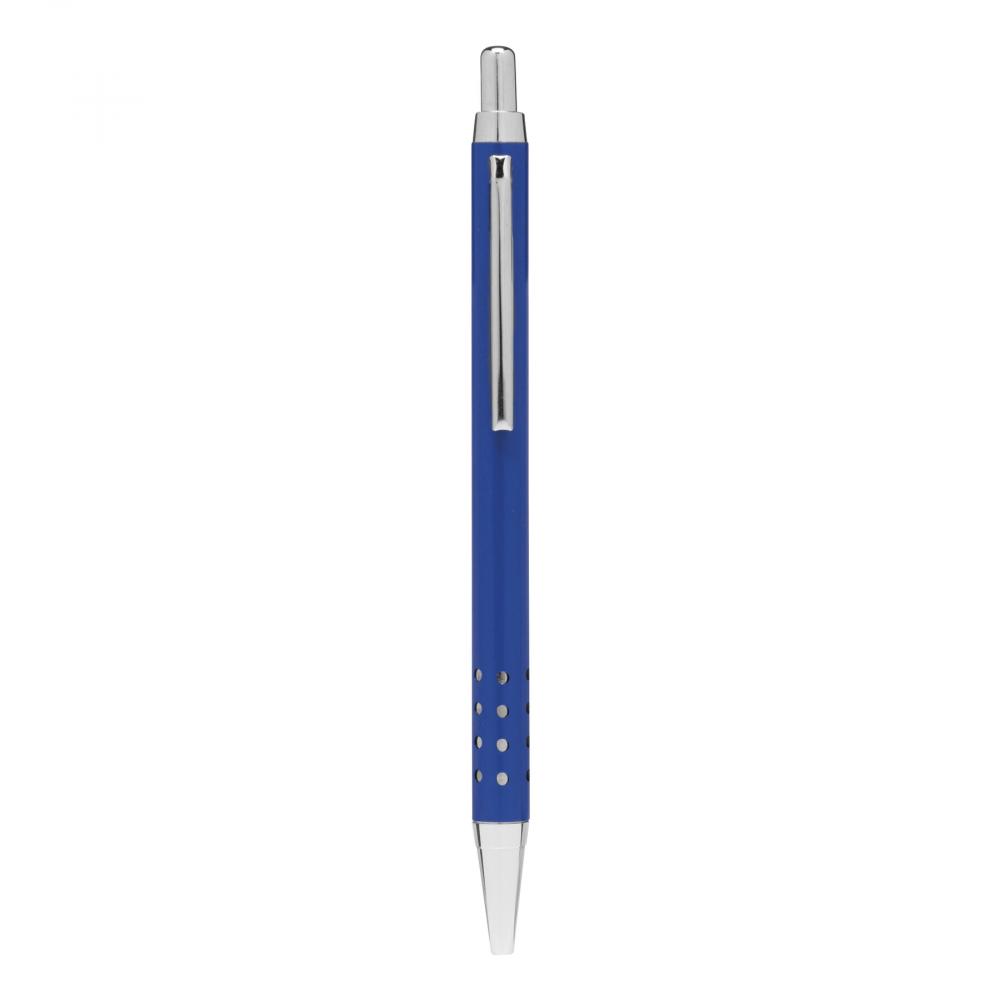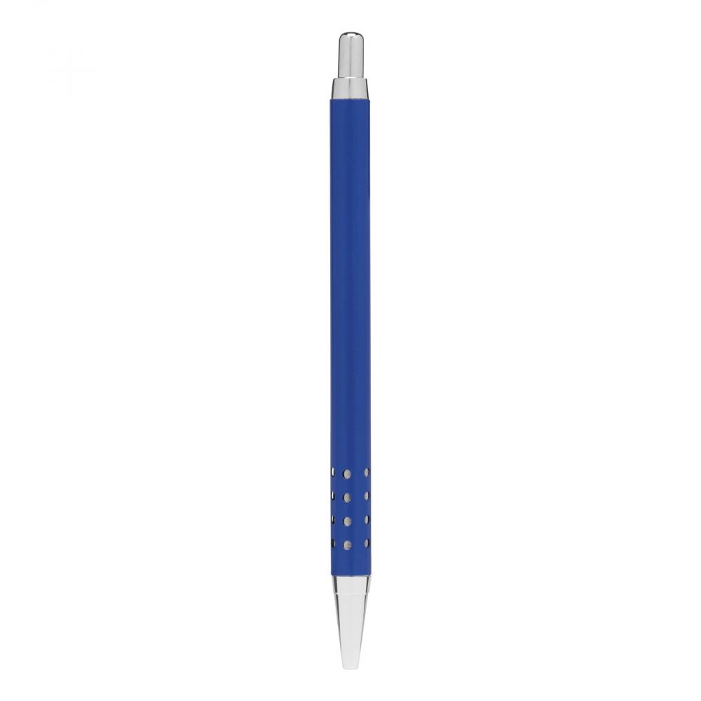 Шариковая ручка из латуни BUDAPEST: корпус с отверстием, механизм с нажимом, большой стержень, синяя чернила.