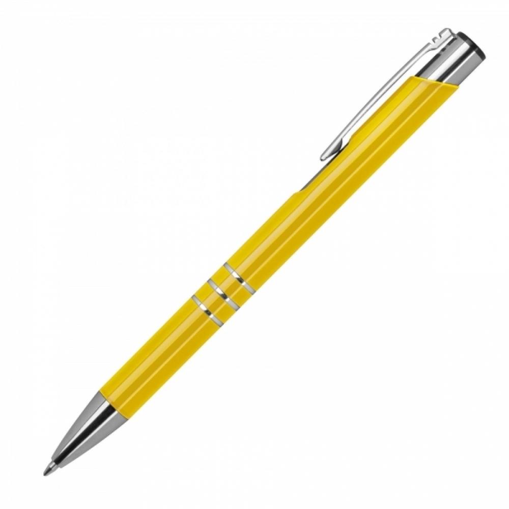 Классическая шариковая ручка из металла с хромированными деталями и тонким зажимом. Шариковая ручка с синими чернилами.