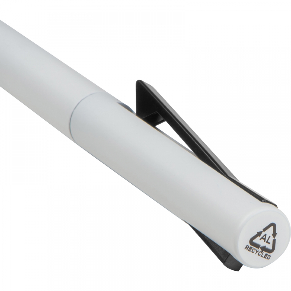 Ручка из переработанного алюминия с полугелевой синей вставкой для особенно приятного письма.
