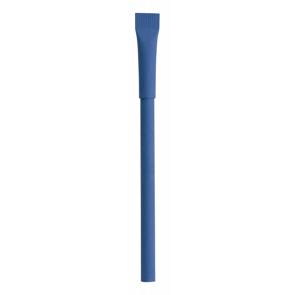 Шариковая ручка из переработанной бумаги с колпачком подходящего цвета и синим стержнем.