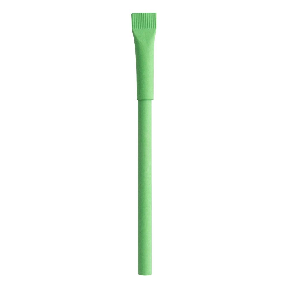Шариковая ручка из переработанной бумаги с колпачком подходящего цвета и синим стержнем.