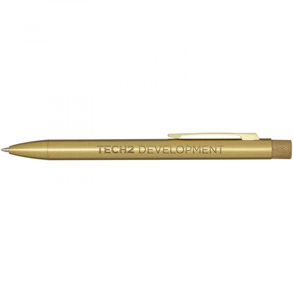 Шариковая ручка с цветным напылением. Кнопка и наконечник изготовлены из латуни, корпус - из переработанной латуни, а клипса - из железа. Цвет чернил: синий. Длина письма: 1000 метров. Размер пера: 1,0 мм. Поставляется в подарочной коробке.