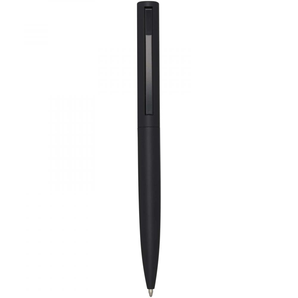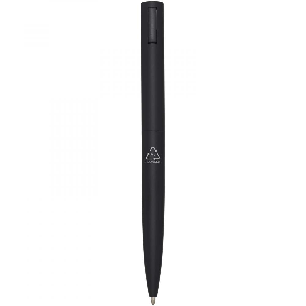 Шариковая ручка с верхней частью корпуса из переработанного пластика и нижней частью из переработанного алюминия. Клип изготовлен из железа. Цвет чернил: синий. Длина письма: 1000 метров. Размер наконечника: 1,0 мм.