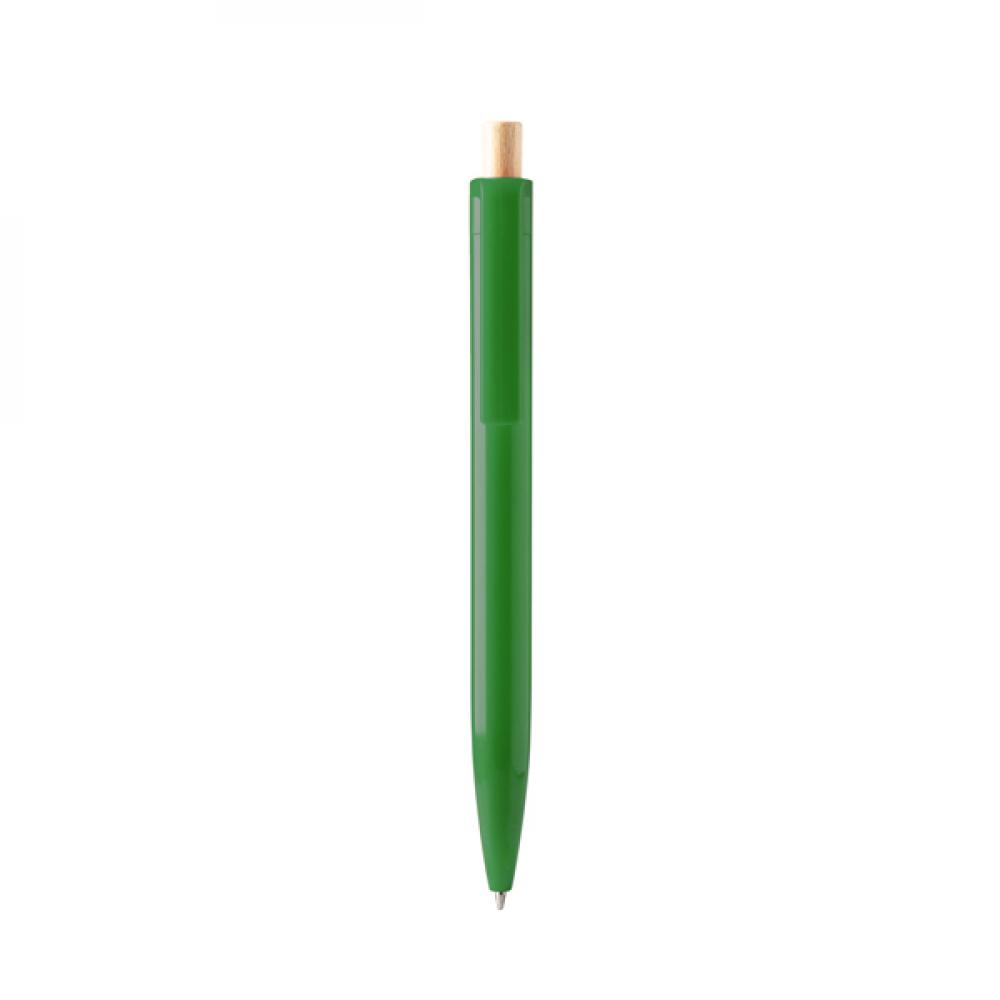 Шариковая ручка из переработанного ABS с кнопкой из бамбука. Синий чернильный стержень большого объема.