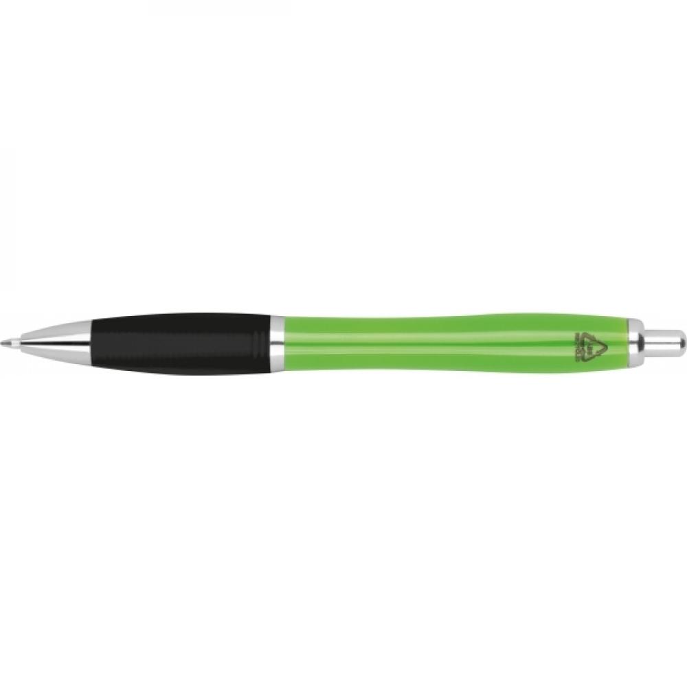 Шариковая ручка из переработанного ABS с резиновой зоной для удержания. Она оснащена большой емкостью синего пластикового стержня.