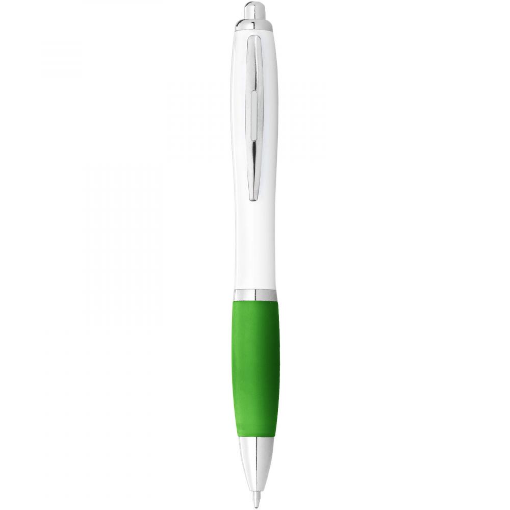 Шариковая ручка с нажимным механизмом и мягкой прорезиненной ручкой.