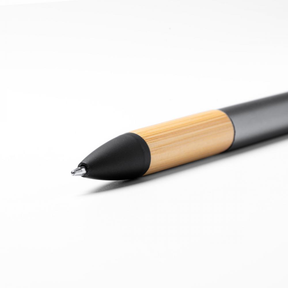 3-х цветная ручка с механизмом выдвижения кнопкой - универсальный и удобный инструмент для всех ваших письменных нужд. Благодаря механизму выдвижения вы можете легко переключаться между тремя доступными чернилами: синим, черным и красным. Это позволяет вам выделять, подчеркивать и писать разными цветами без необходимости носить с собой несколько ручек. Корпус ручки изготовлен из АБС-пластика, прочного и долговечного материала, а рукоятка выполнена из бамбука, что придает ей естественный и элегантный вид. Рукоятка из бамбука также обеспечивает комфорт при письме в течение длительного времени. Помимо своей письменной функциональности, ручка оснащена сенсорным указателем на противоположном конце. Сенсорный указатель позволяет точно взаимодействовать с сенсорными устройствами, такими как смартфоны или планшеты, избегая нежелательных отпечатков пальцев на экране. С этой 3-х цветной ручкой у вас будет все необходимые варианты цветов в одном инструменте, а также удобство выдвижной кнопки и дополнительная функциональность сенсорного указателя. Эта ручка идеально подходит для работы, учебы или любого другого случая, когда вам нужен универсальный и практичный инструмент для письма.