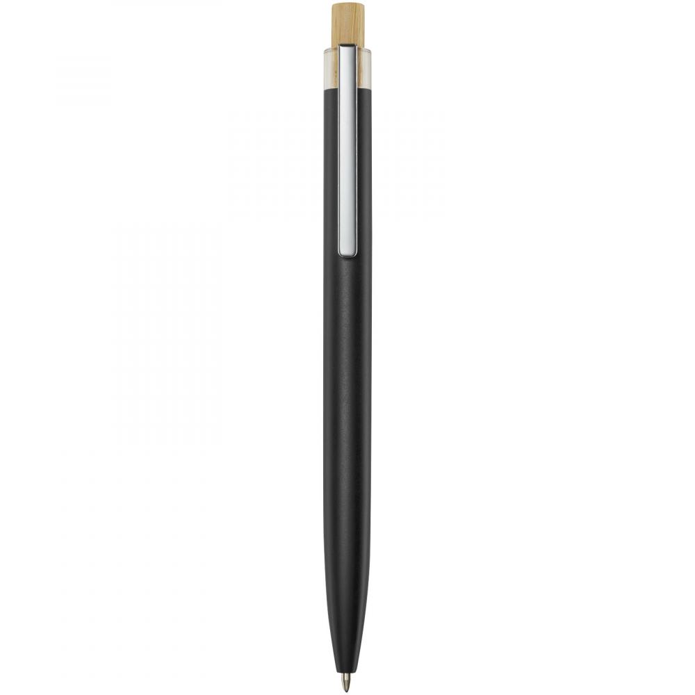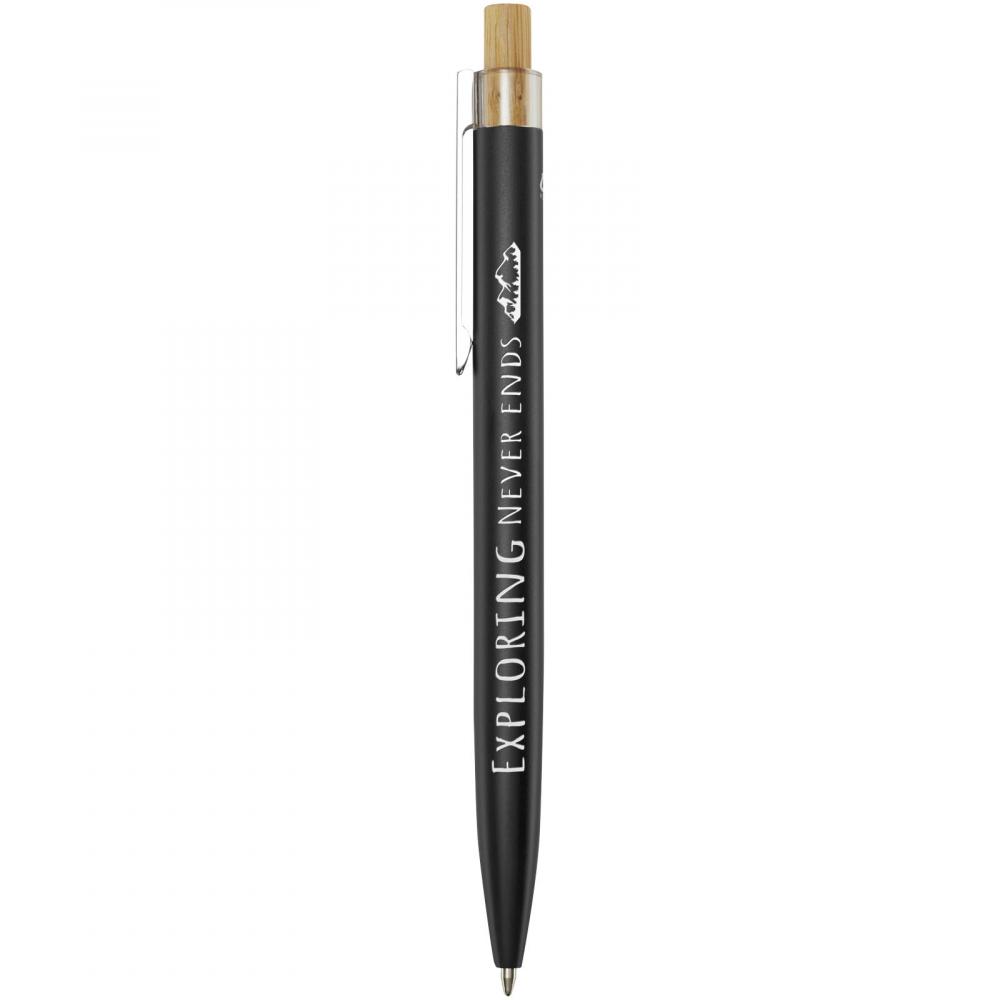 Шариковая ручка Nooshin изготовлена из переработанного алюминия, что требует меньше энергии по сравнению с производством алюминия из сырья. Это также уменьшает количество отходов на свалках и помогает сохранять природные ресурсы, стремясь сократить выбросы парниковых газов. Кнопка выполнена из бамбука. Цвет чернил: синий. Длина письма: 800 метров. Размер пера: 1,00 мм.