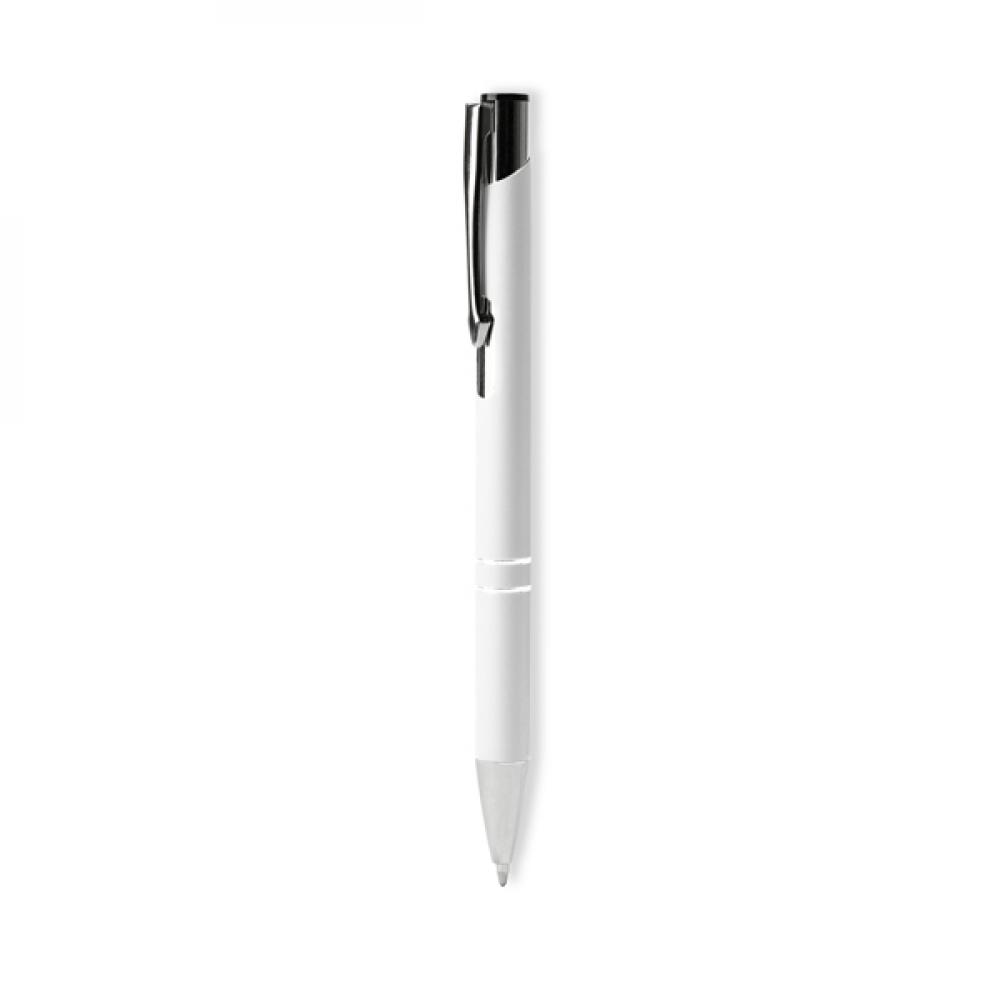 Шариковая ручка с металлическим корпусом с мягким покрытием и нажимным механизмом с анодированным покрытием. Наконечник, клипса и детали из металла с хромированным покрытием. Крупный стержень черного цвета.