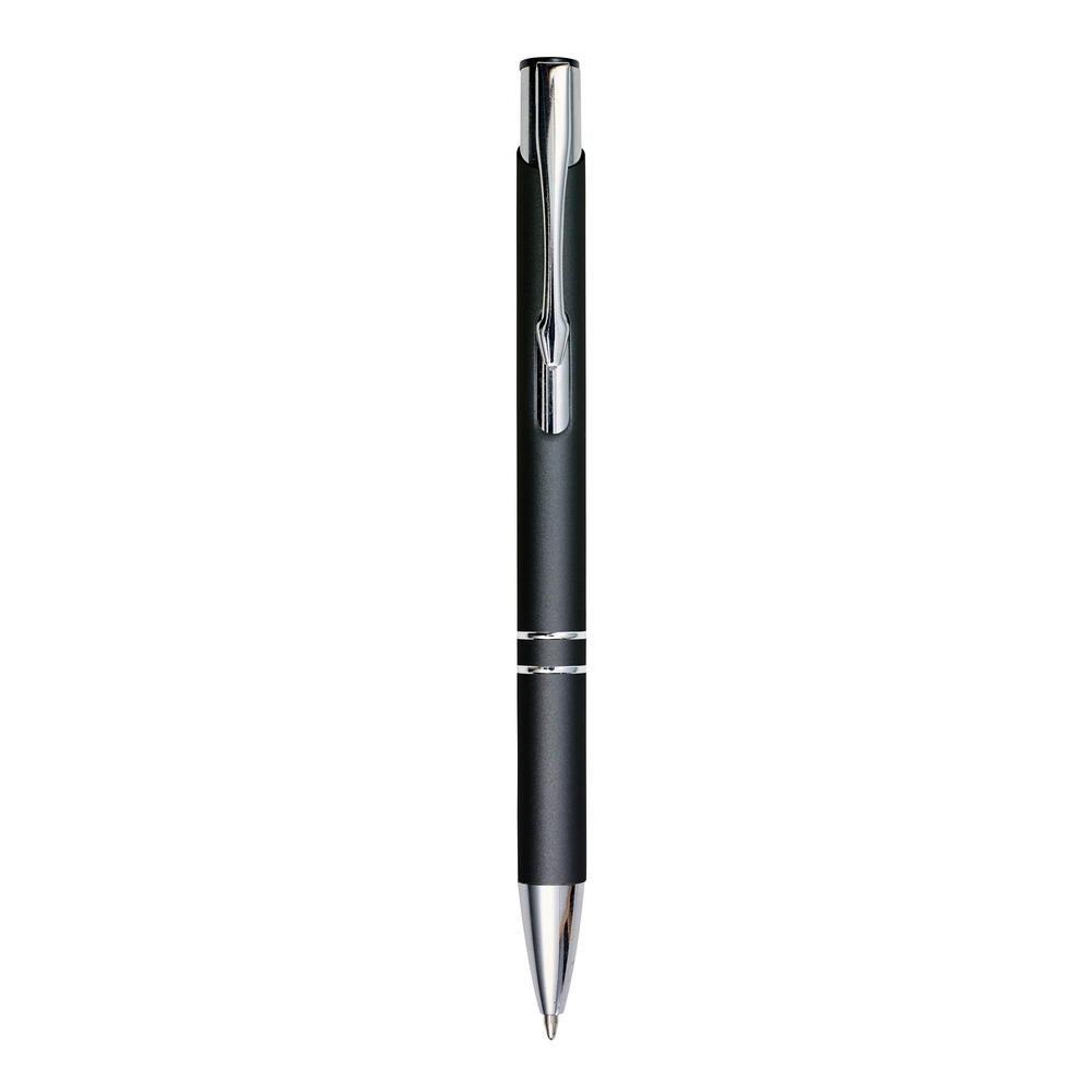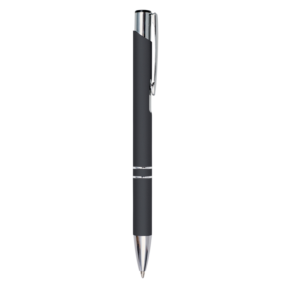 Ручка шариковая с резиновым покрытием и элементами серебра, зеркальная поверхность после гравировки