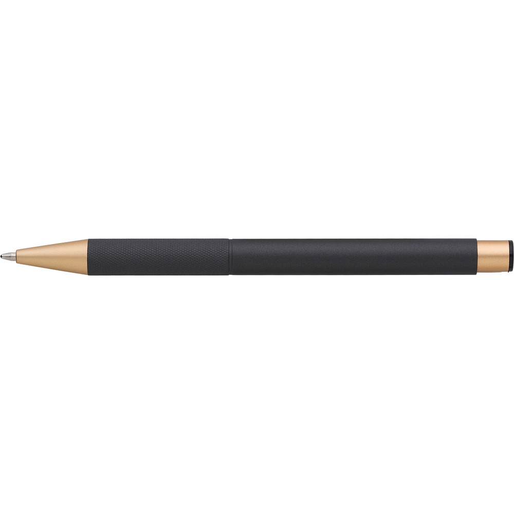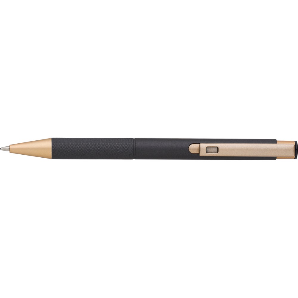 Шариковая ручка изготовлена из алюминия с клипсой.