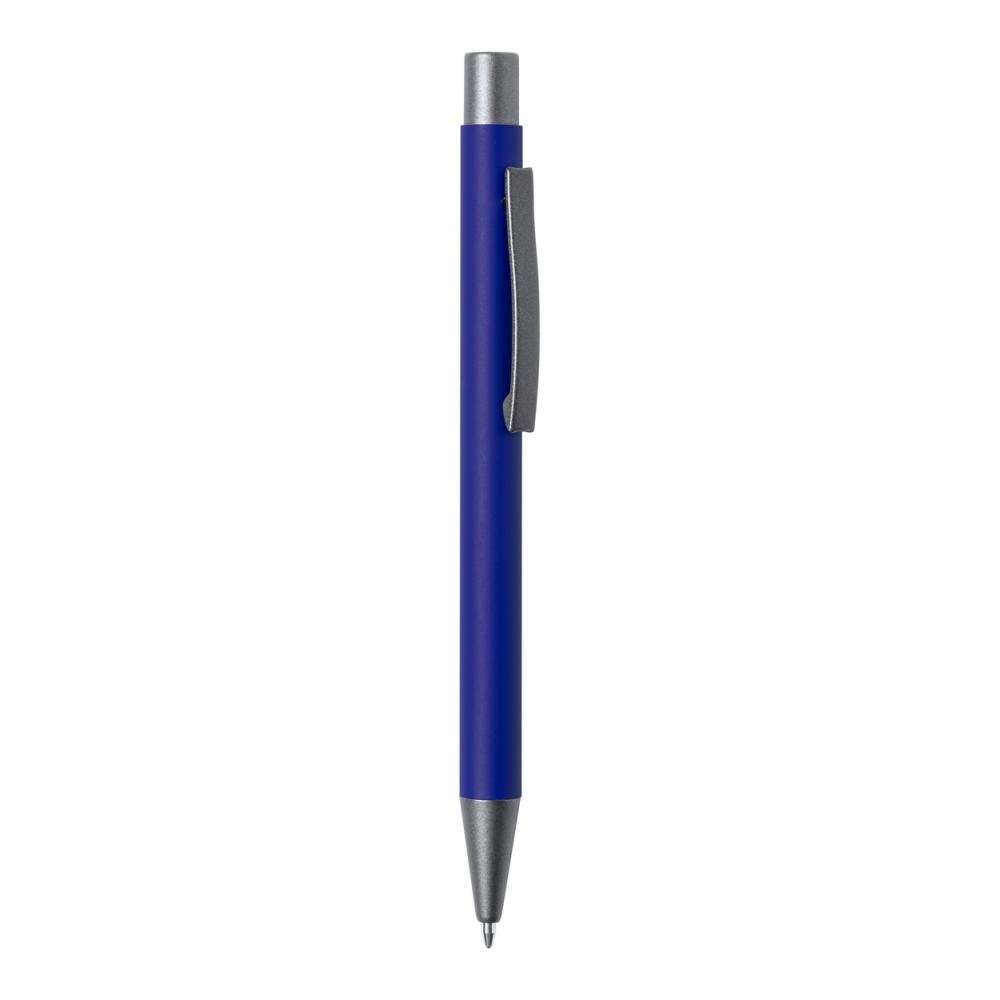 Шариковая ручка из переработанного алюминия с деталями из оружейного металла. С голубой заправкой.