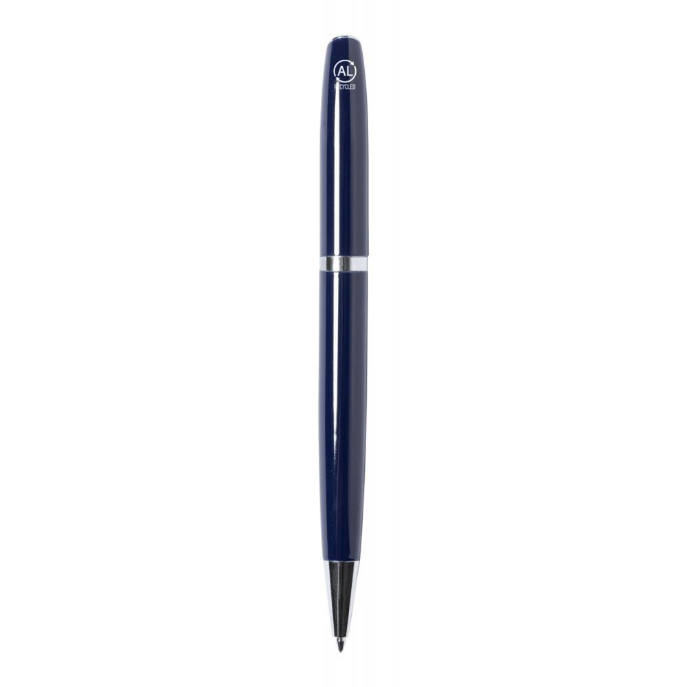 Шариковая ручка из переработанного алюминия с синей заправкой.