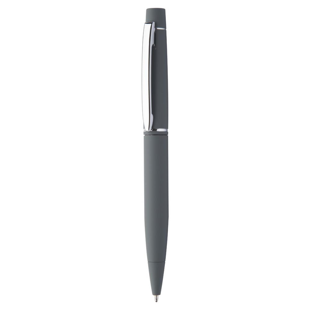 Металлическая поворотная шариковая ручка с прорезиненным покрытием и синим стержнем. Со специальным покрытием для зеркальной лазерной гравировки.