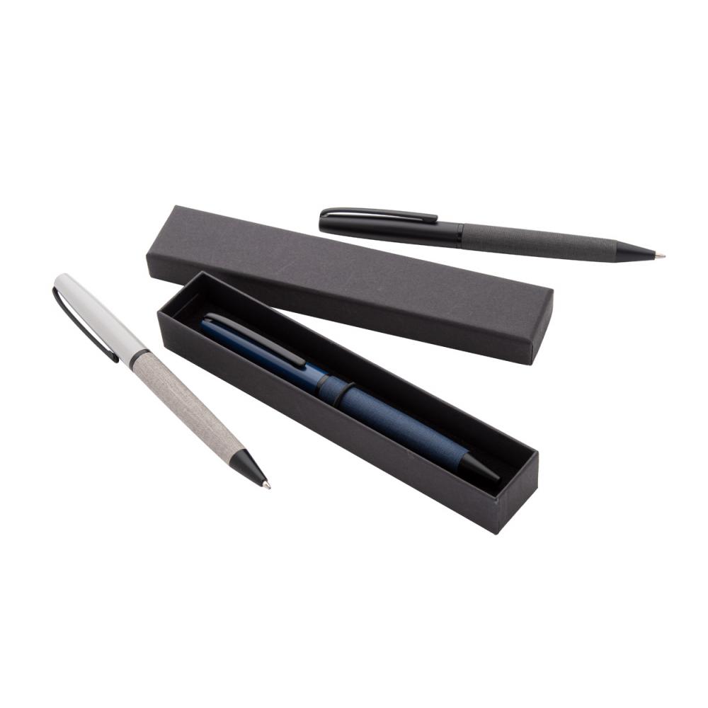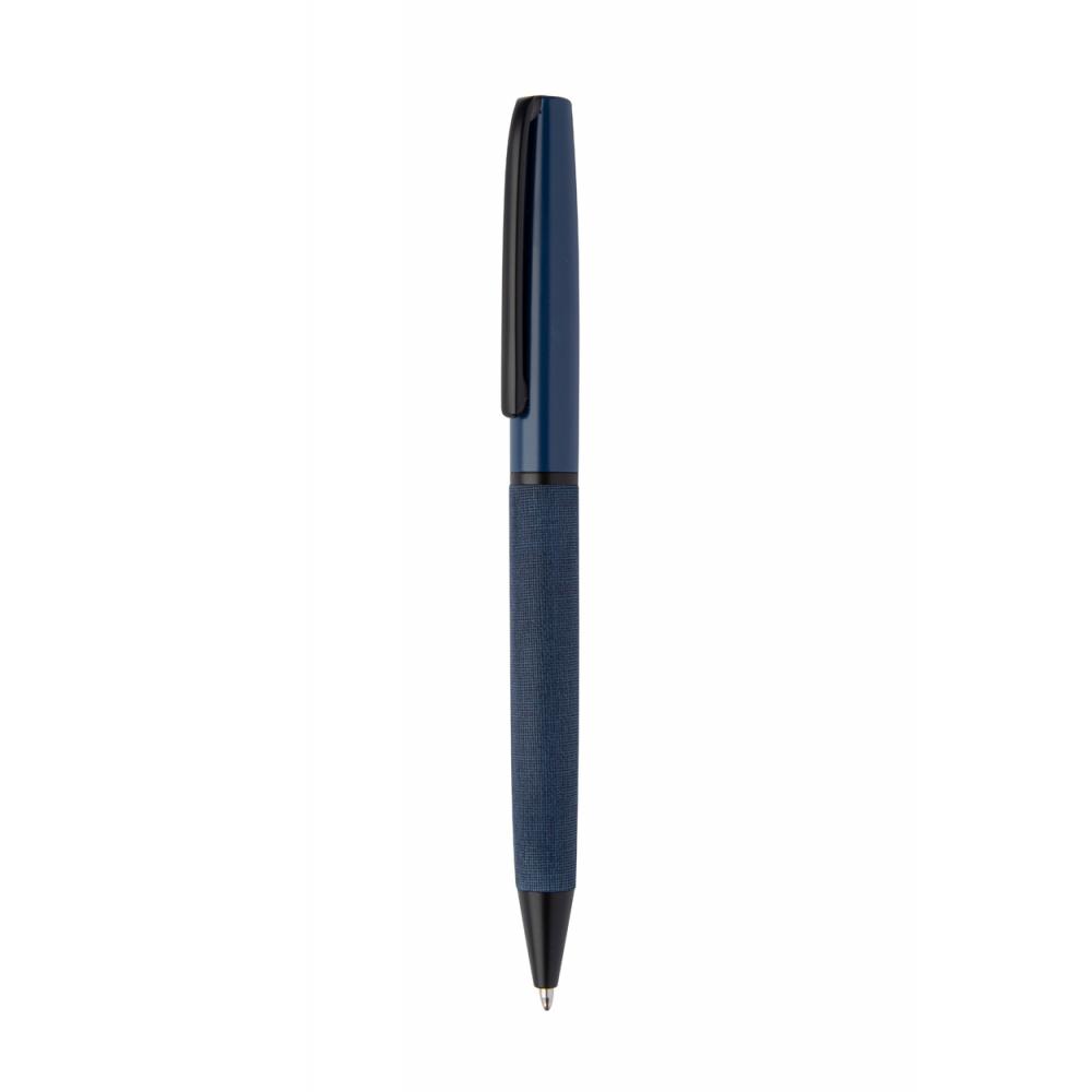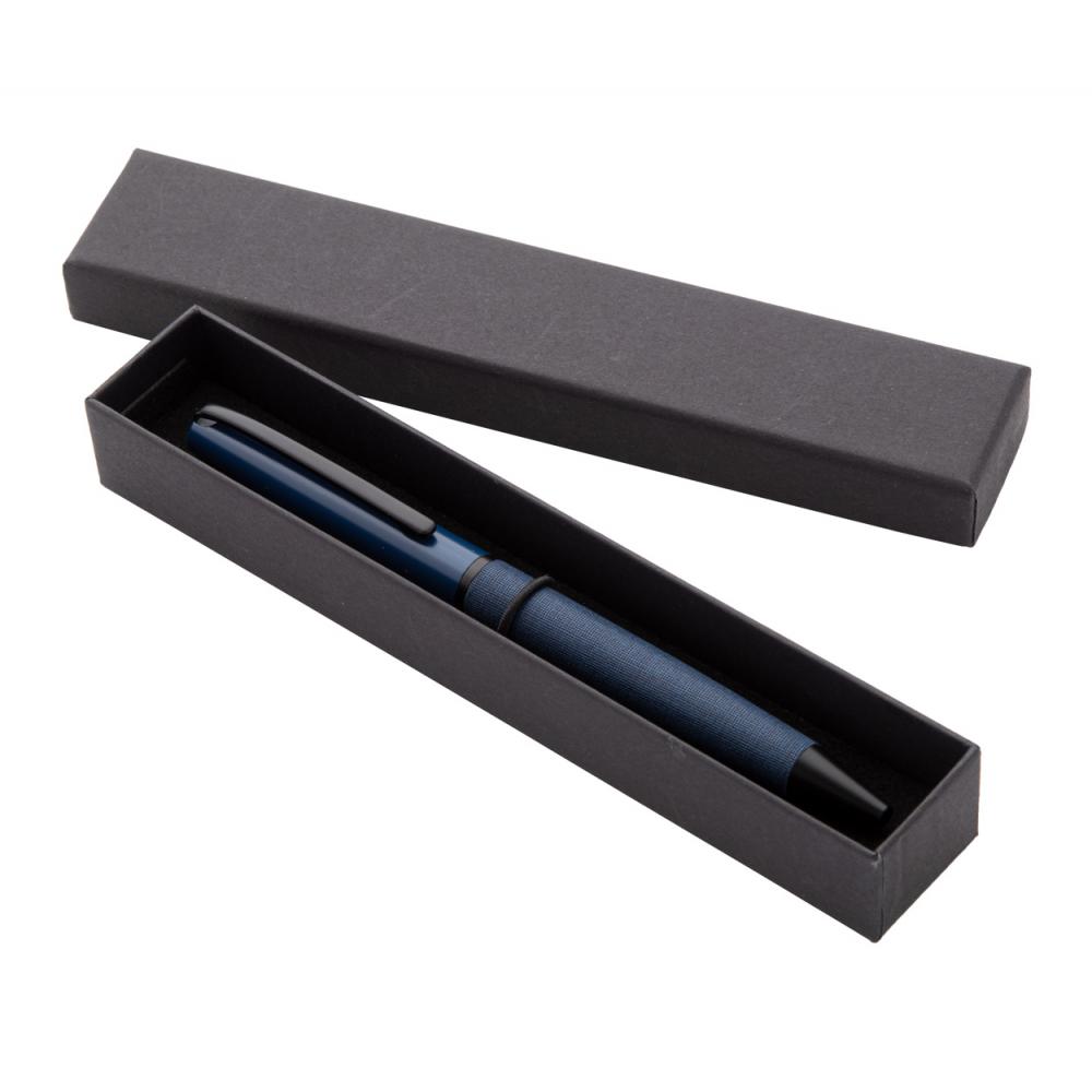 Элегантная металлическая ручка-роллер с кожаным покрытием корпуса и черными деталями. В черном подарочном футляре. С синей заправкой.