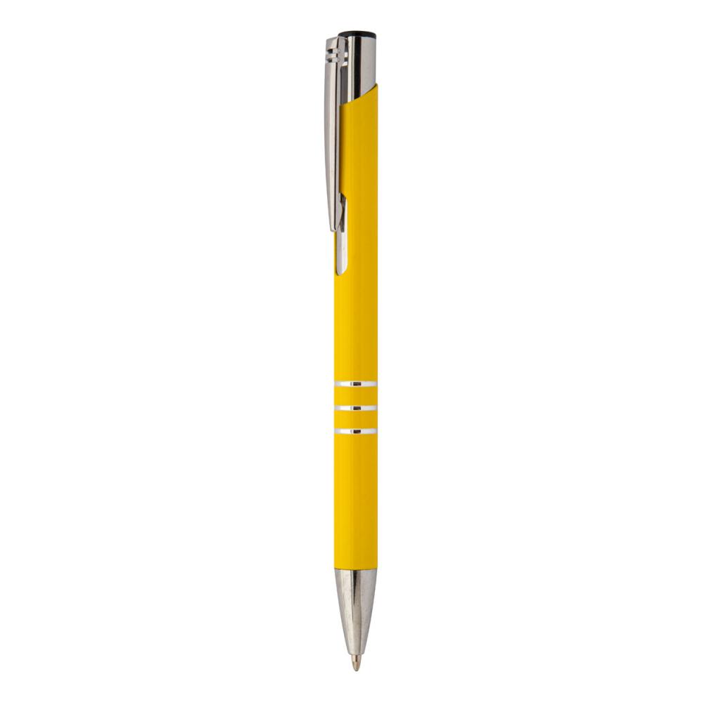 Шариковая ручка из переработанного алюминия с синим стержнем.