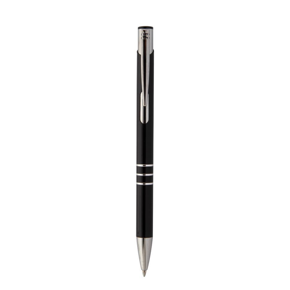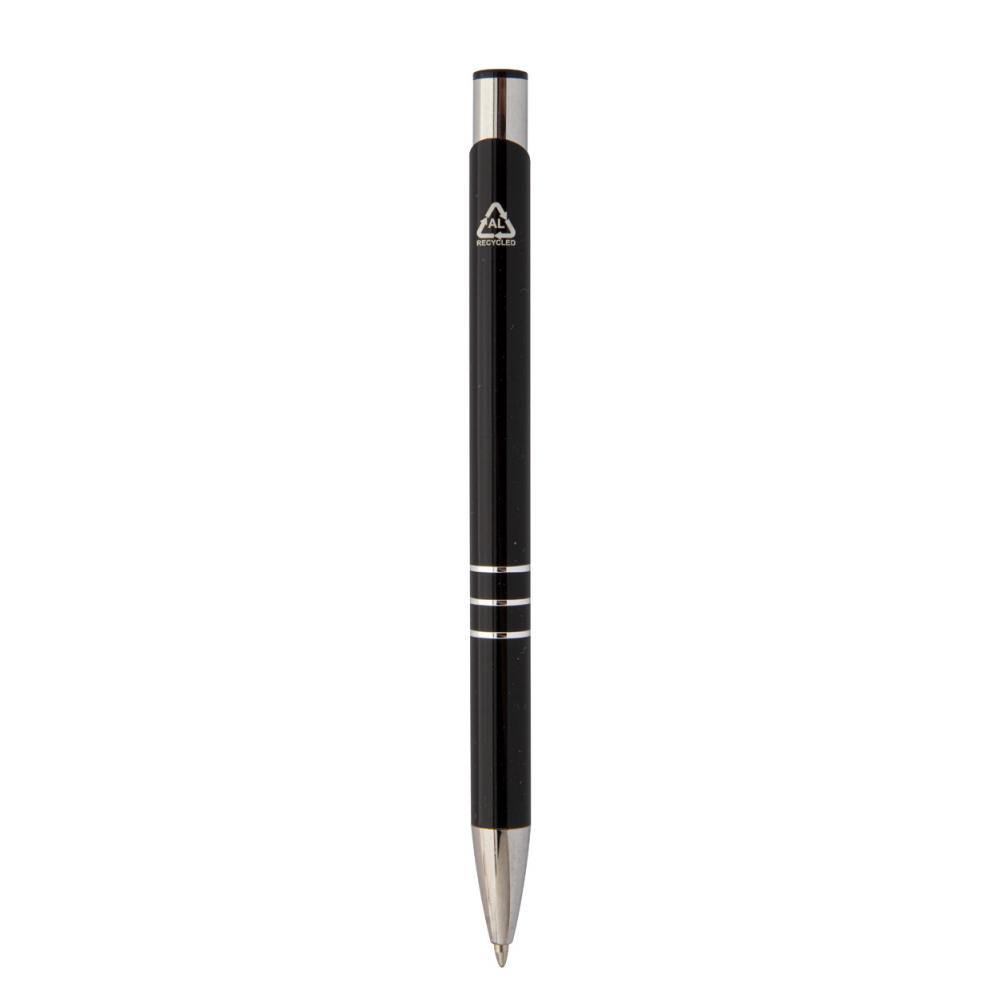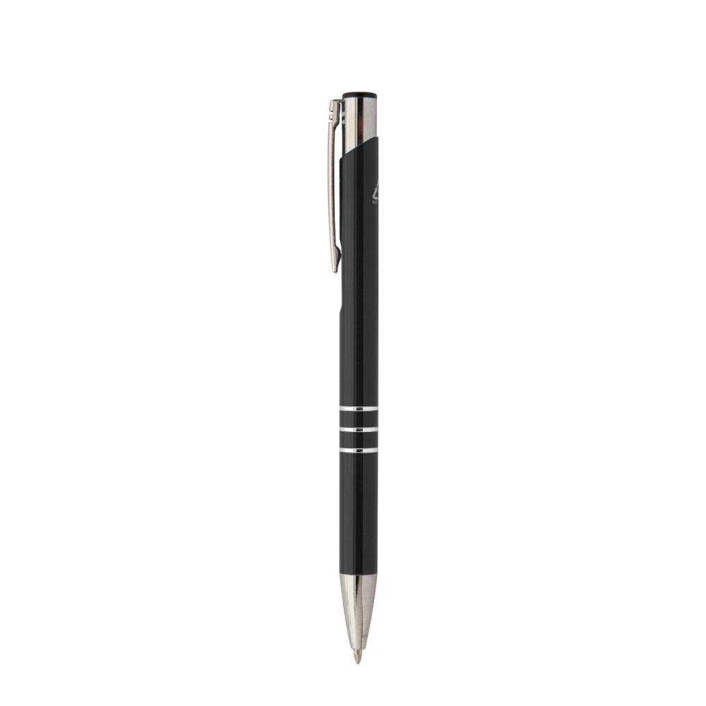 Шариковая ручка из переработанного алюминия с синим стержнем.