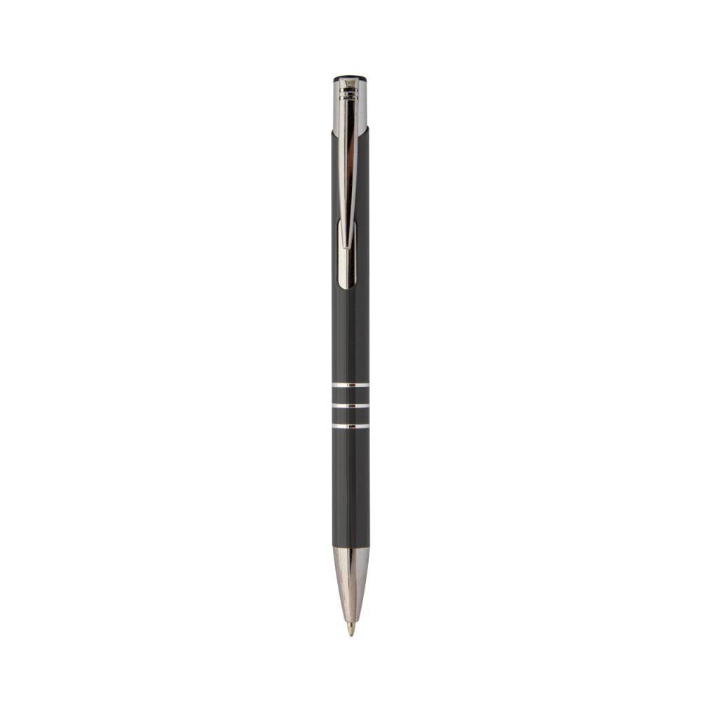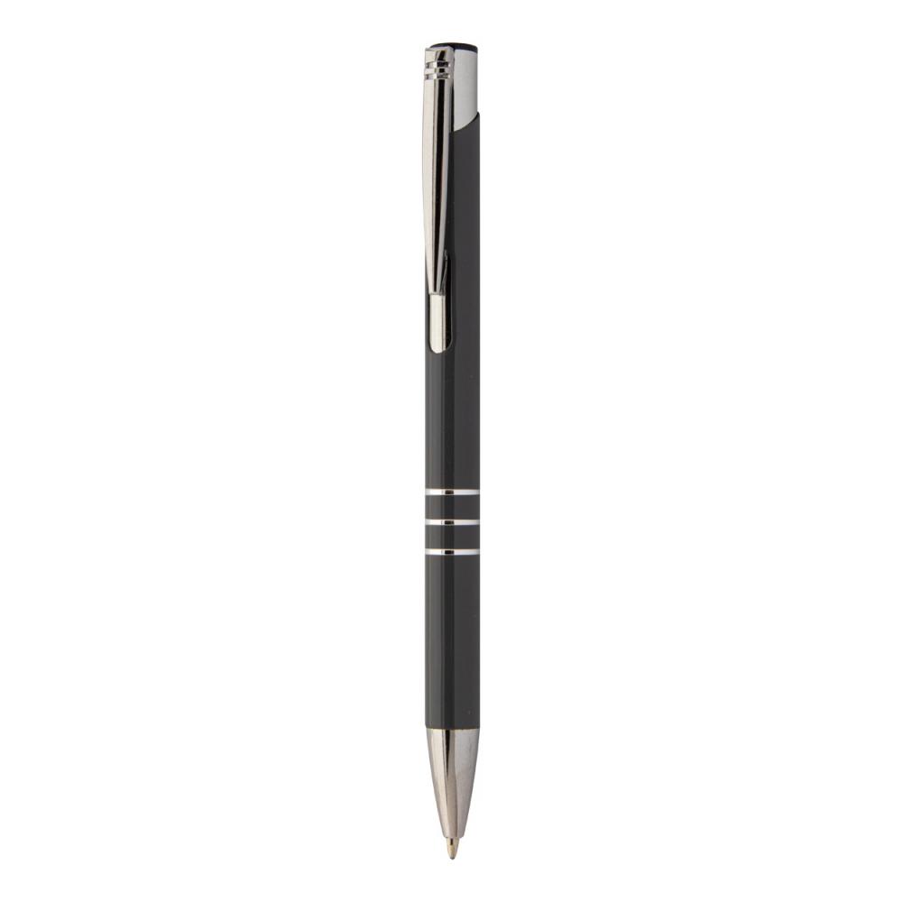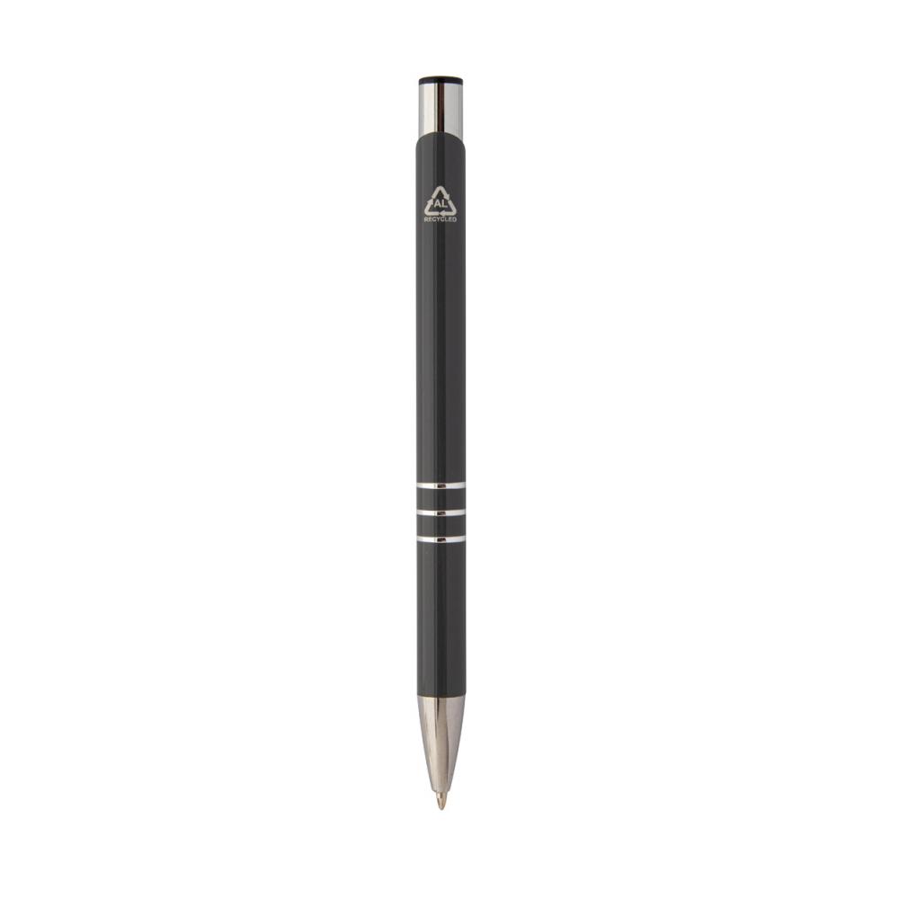 Шариковая ручка из переработанного алюминия с синим стержнем.