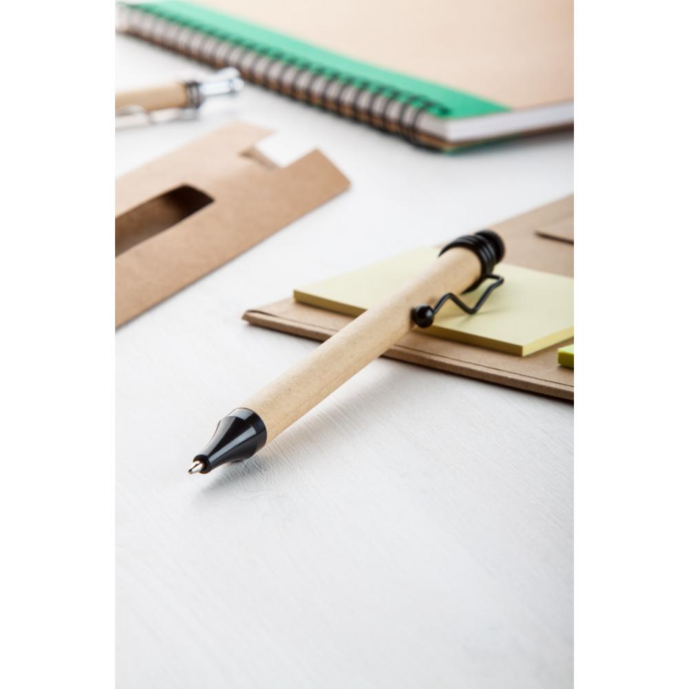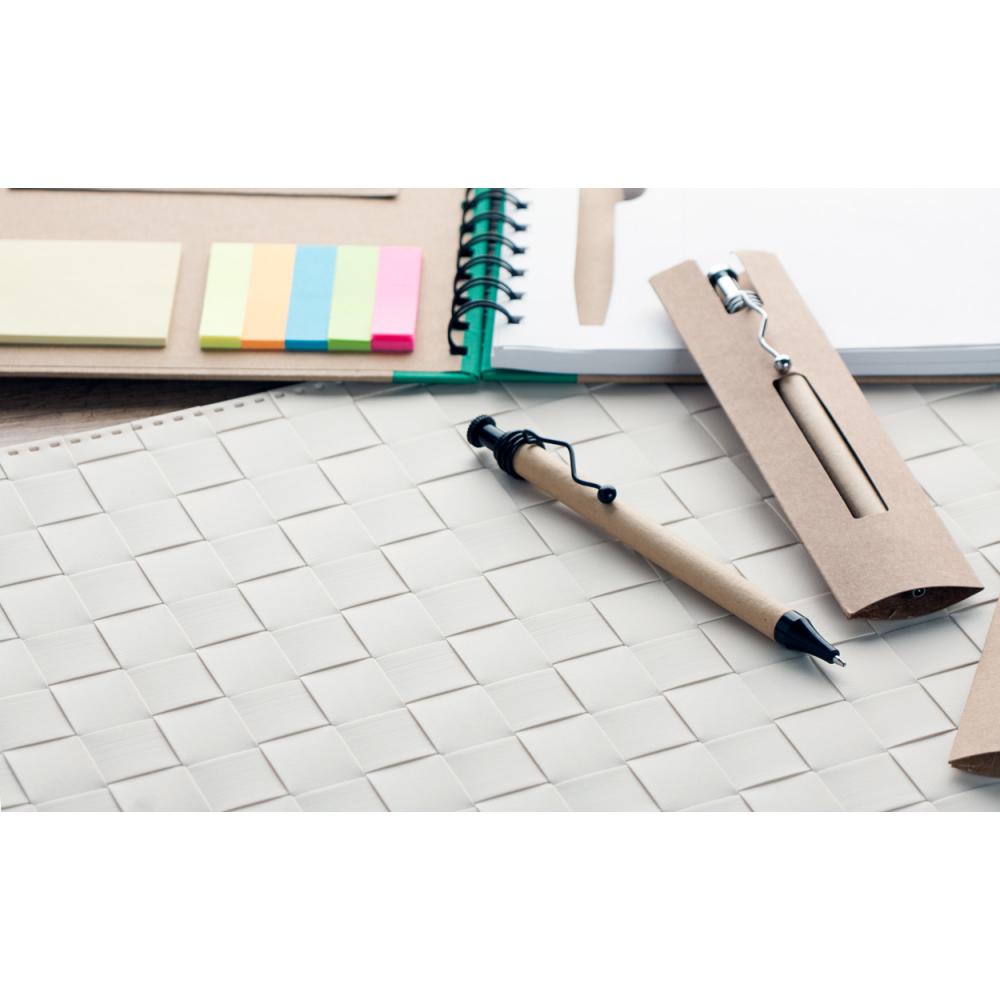 Шариковая ручка в футляре из переработанной бумаги. С синим стержнем.