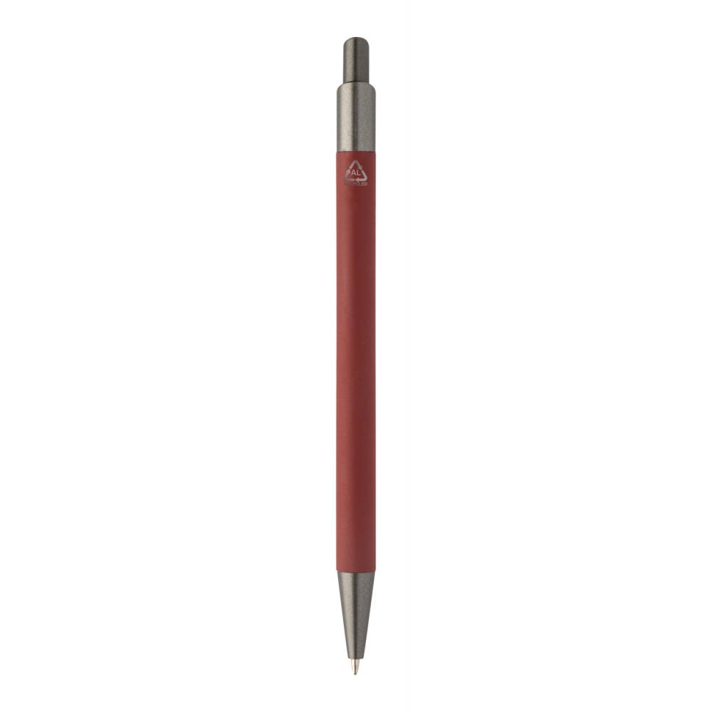 Шариковая ручка из переработанного алюминия с резиновым корпусом и деталями с покрытием ганметаллик. С синим стержнем.